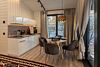 - уютная кухня с техникой: ПММ, СВЧ, варочная панель, холодильник;