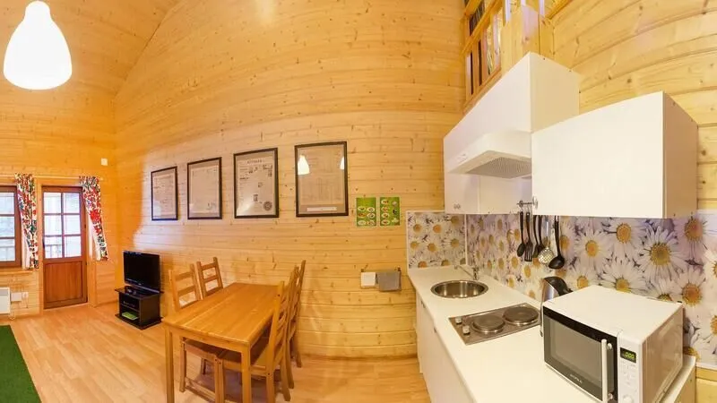 Питание гости организовывают самостоятельно. В коттеджах имеются оборудованные всем необходимым кухни.