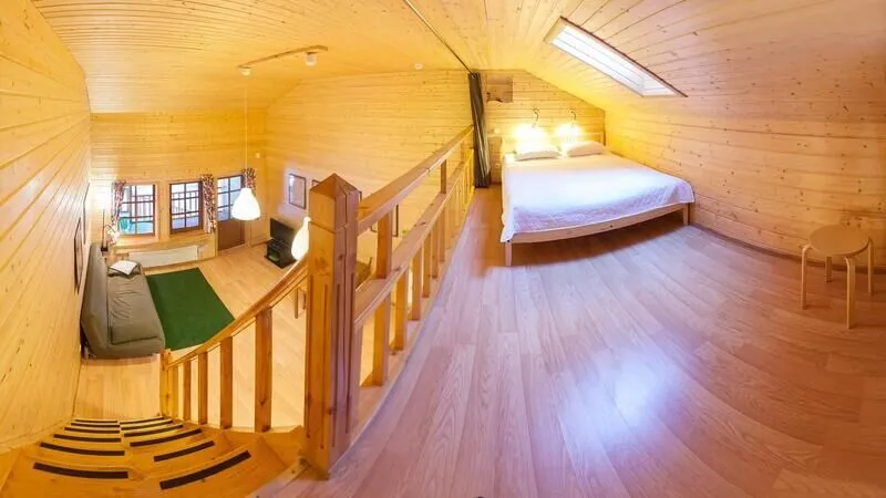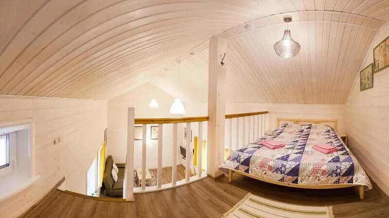 - Антресоль с двуспальной кроватью;