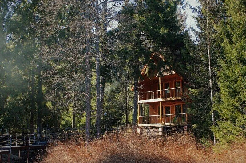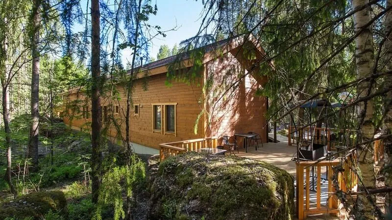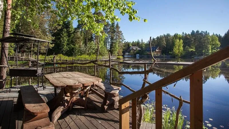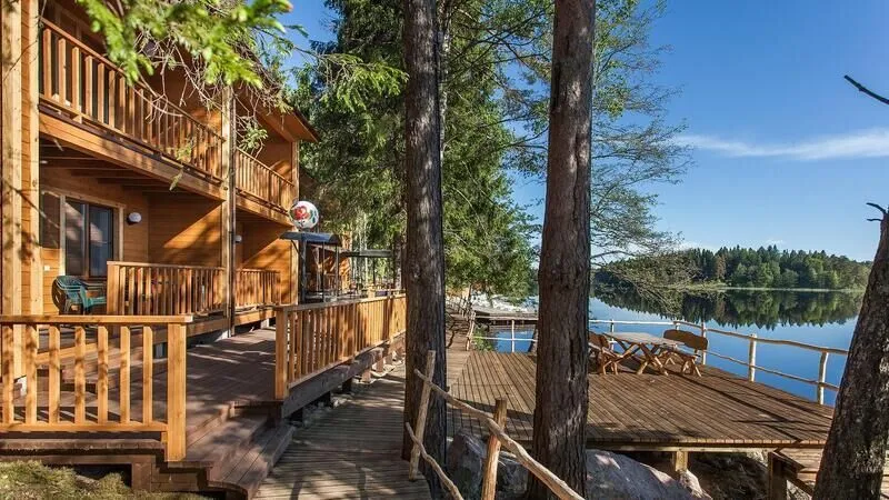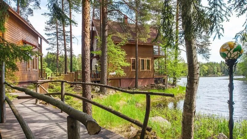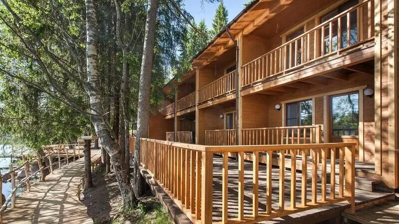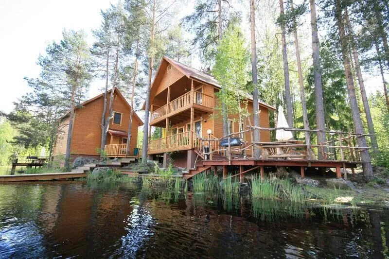Абсолютно новые и по-настоящему большие (220 м2) коттеджи с камином и сауной, расположенные в уединенной части базы отдыха на берегу озера. Виллы находятся на значительном расстоянии друг от друга, что обеспечивает дополнительную приватность Вашего отдыха. Каждая вилла имеет собственную парковку, оборудованный выход к озеру, мангальную площадку и просторную террасу для дружеских застолий. Для трех вилл оборудован отдельный пирс-пляж. Вдоль берега проложены деревянные дорожки с художественной подсветкой.