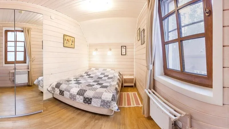 - Шесть спальных комнат, одна из которых с двухъярусной кроватью (снизу- двуспальное место, сверху – односпальное). В остальных спальнях двуспальные кровати могут быть разделены на две односпальные. В одной спальне есть детская кроватка;