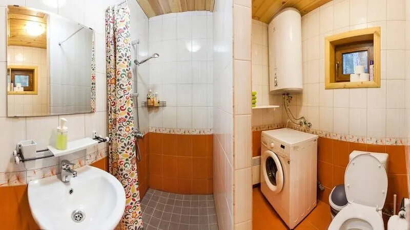- Санузел с душевой кабиной и стиральной машиной.