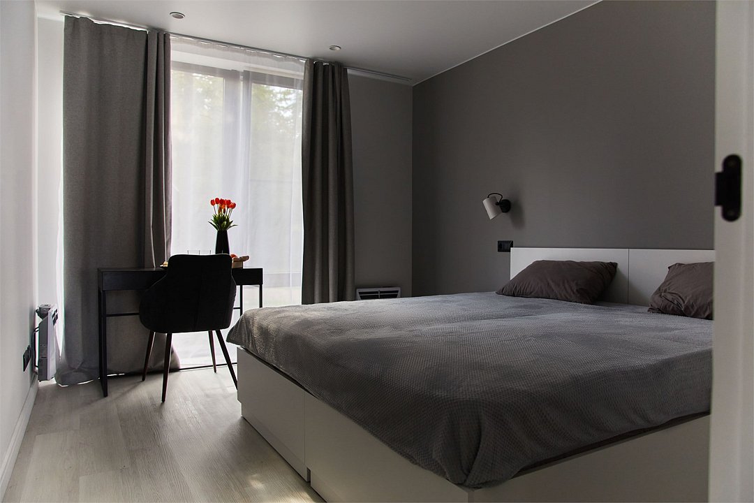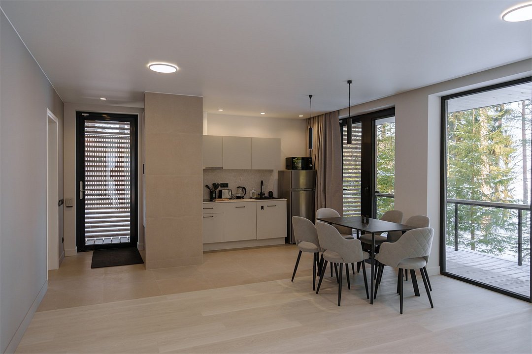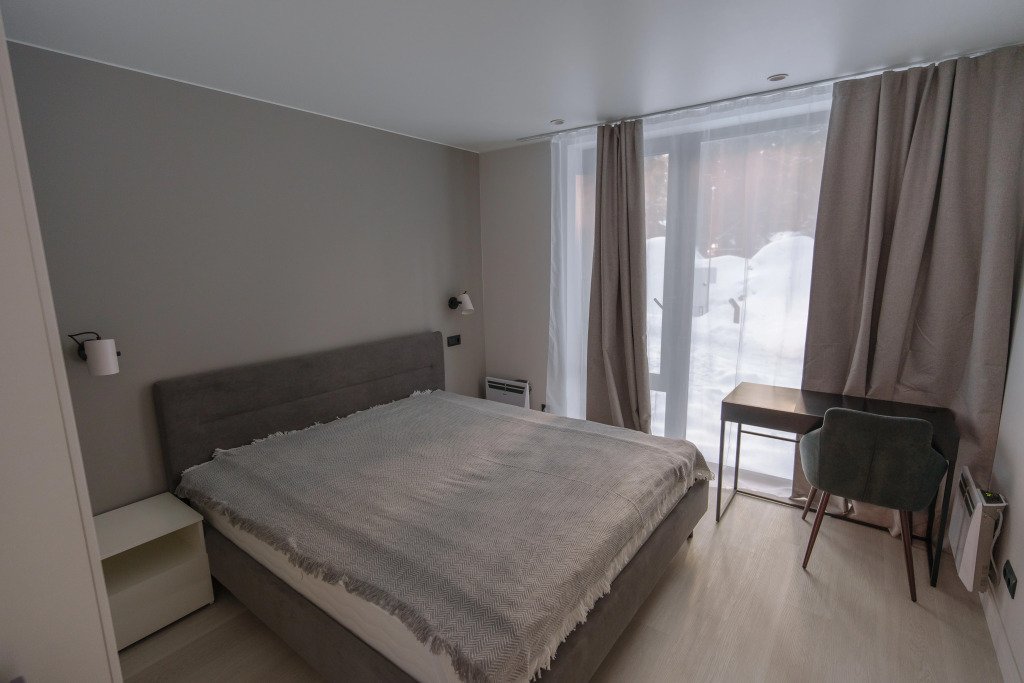 Апартаменты с большой гостиной, двумя спальнями, просторной террасой и потрясающим видом на озеро Пионерское.