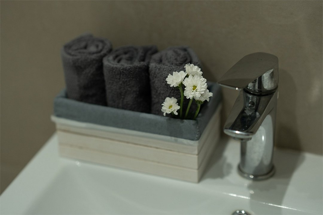 - Туалетные принадлежности для каждого гостя: зубной набор, гель для душа, шампунь, полотенца, тапочки