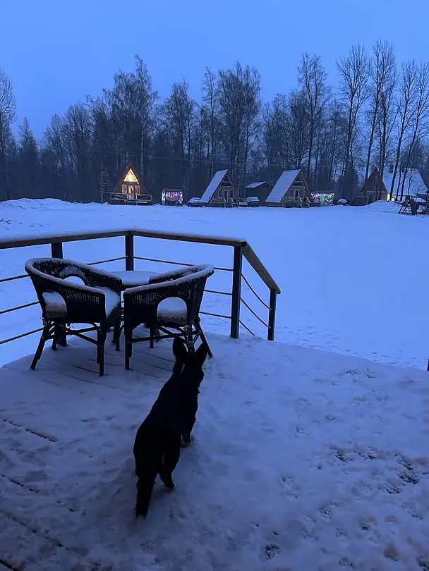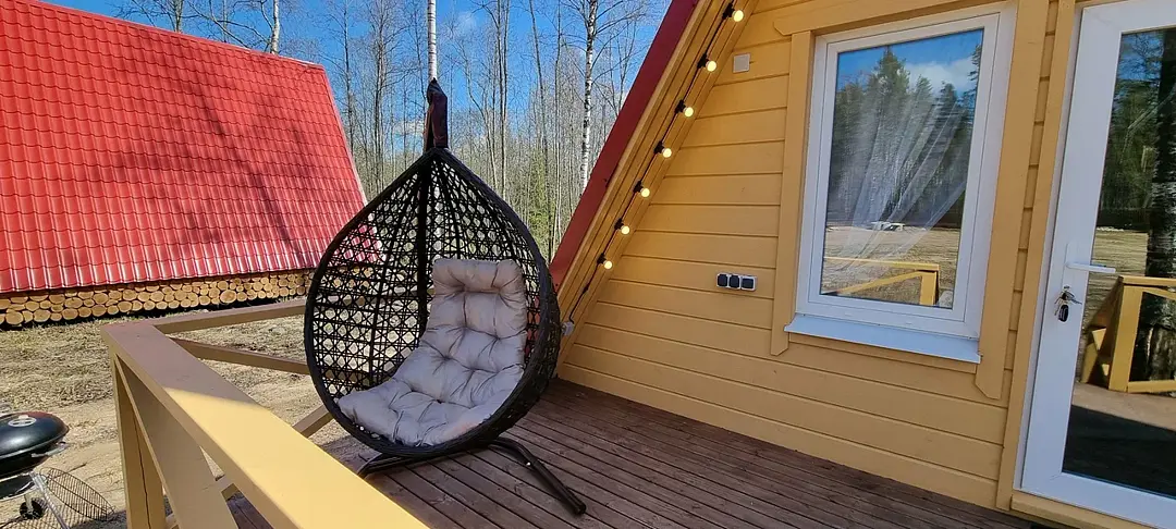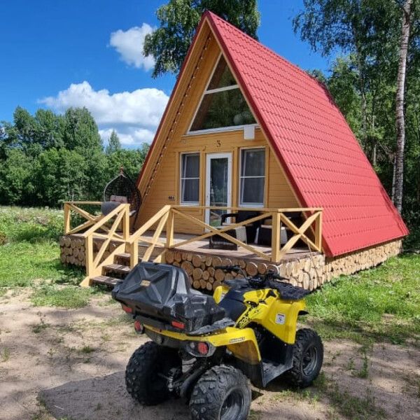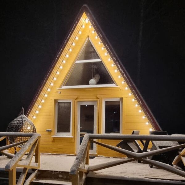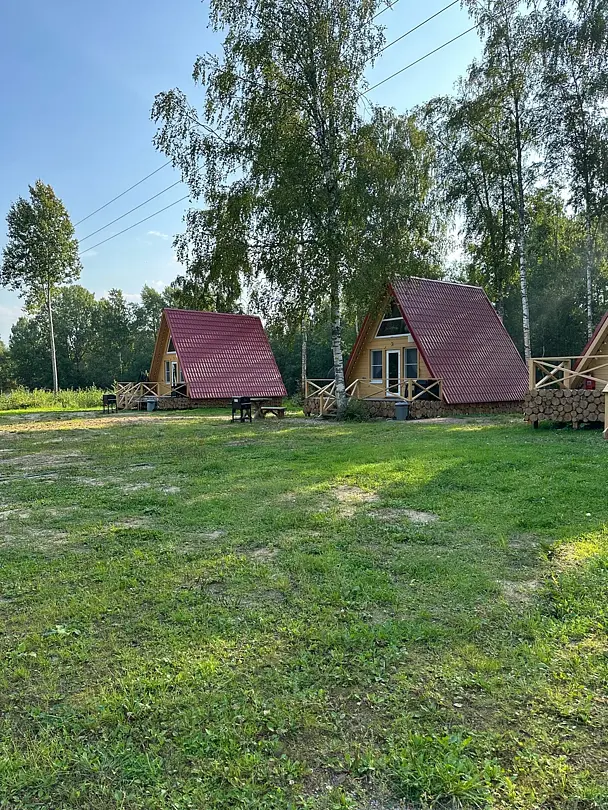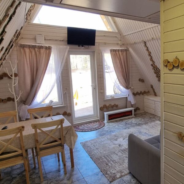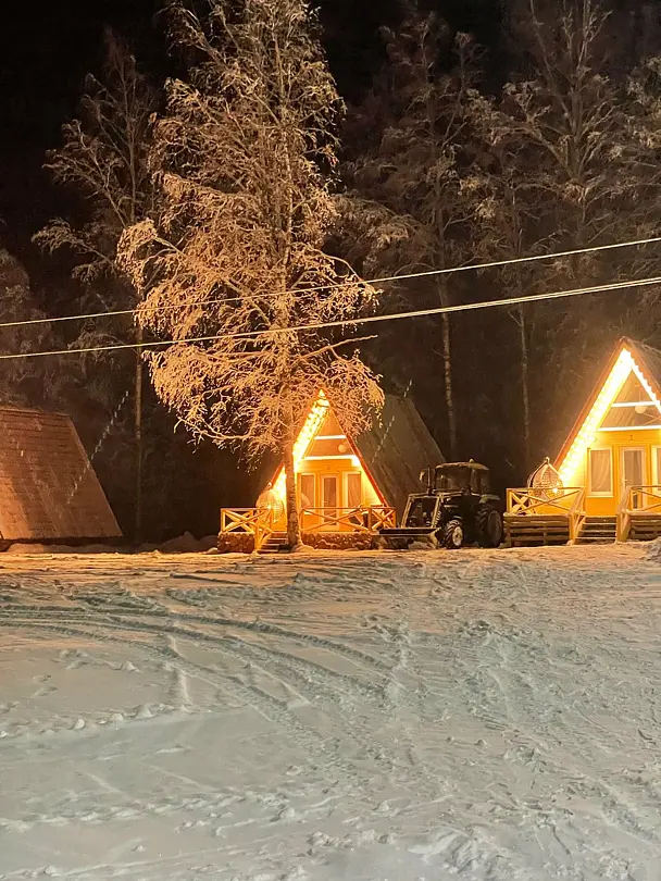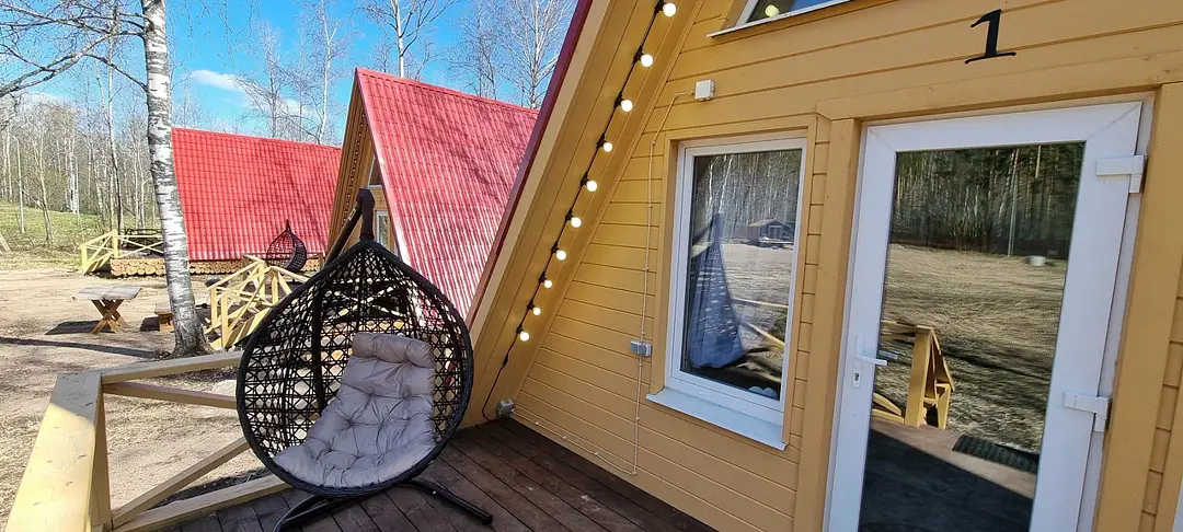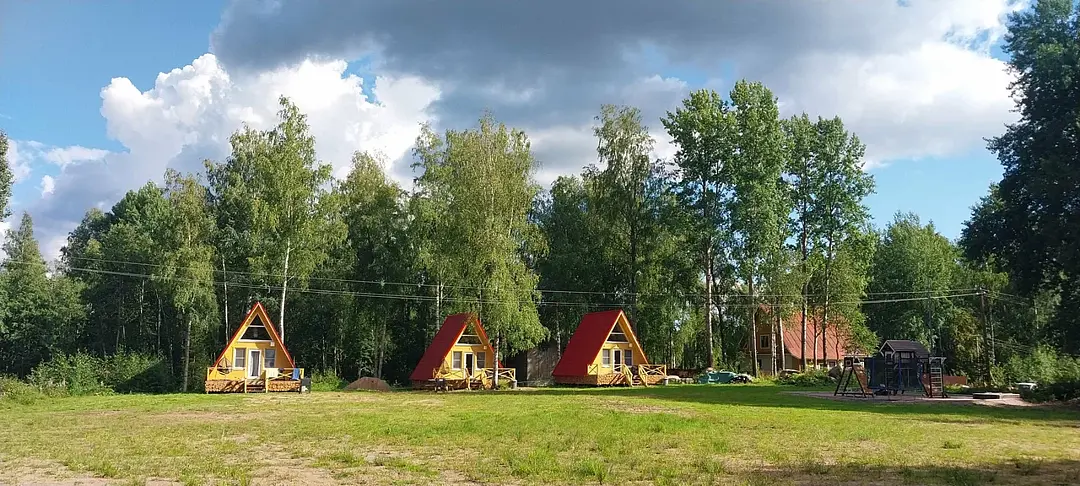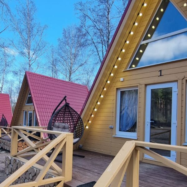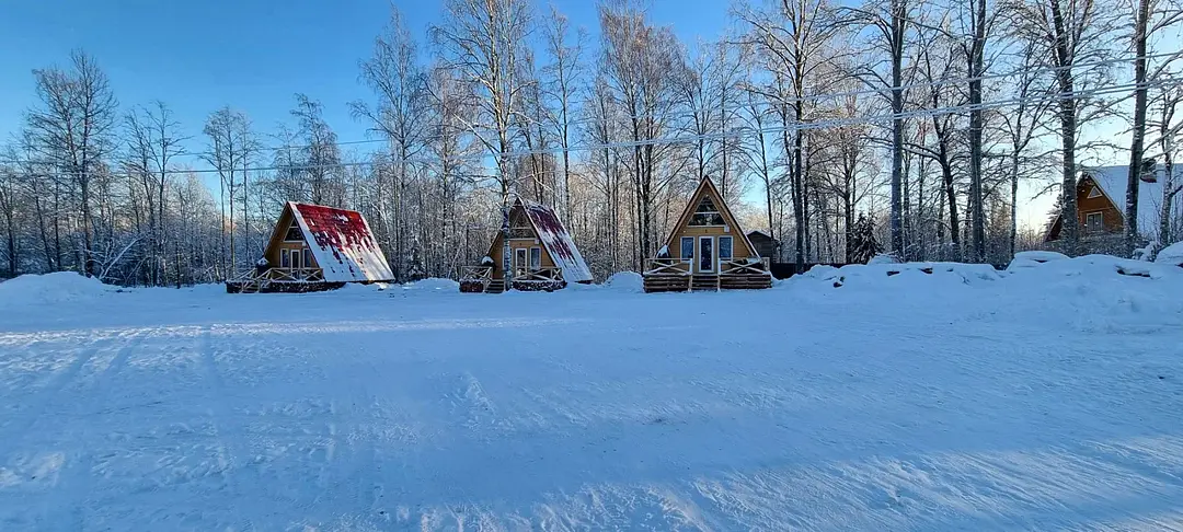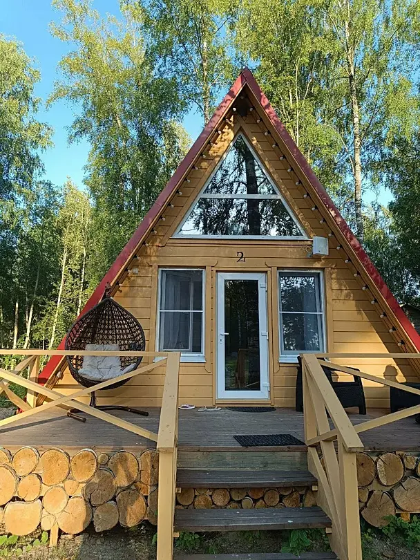 Комфортабельные оригинальные дома в стиле «А-фрейм» в шаговой доступности до своего пляжа на Александровском озере.