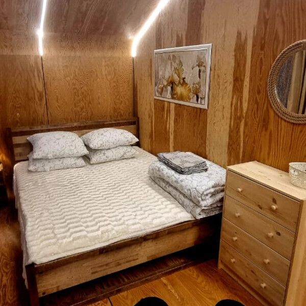 В гостевой большой раскладной диван, в спальне огромная кровать для влюблённых в волшебный сказочный мир Бажова и Одоевского.