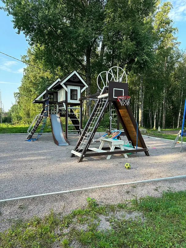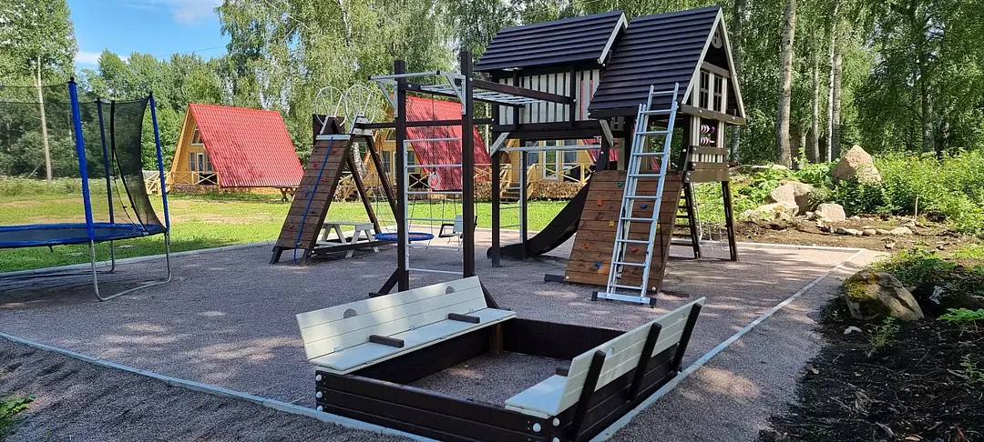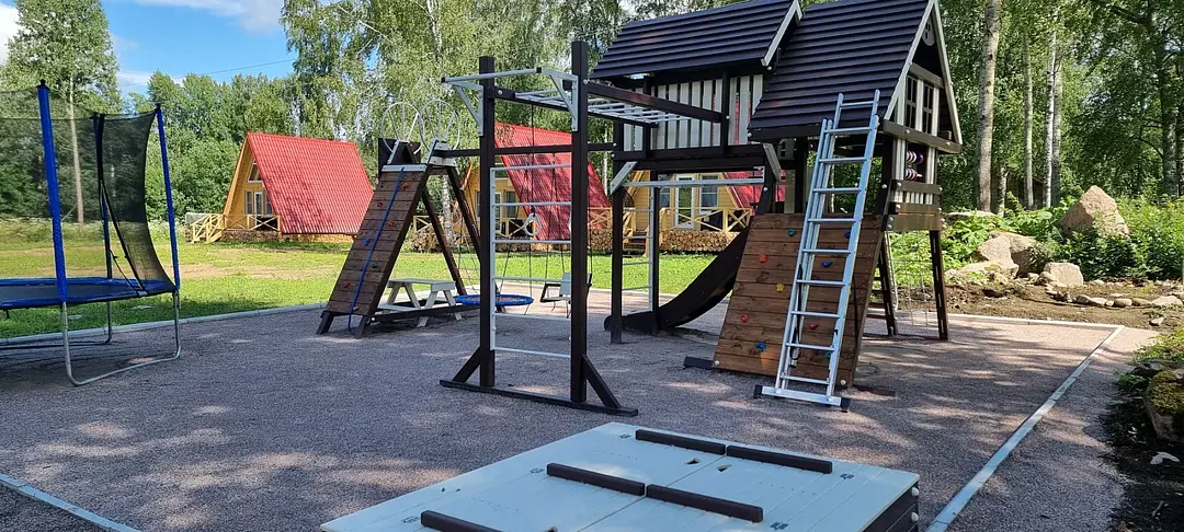Для самых маленьких гостей установлен детский городок с рукоходом, горкой, гимнастическими кольцами, качелями, батутом, песочницей и большим разнообразием игрушек.