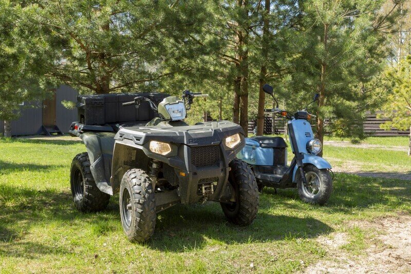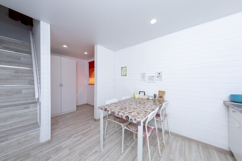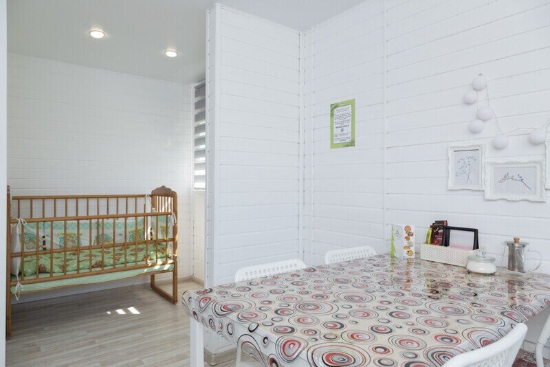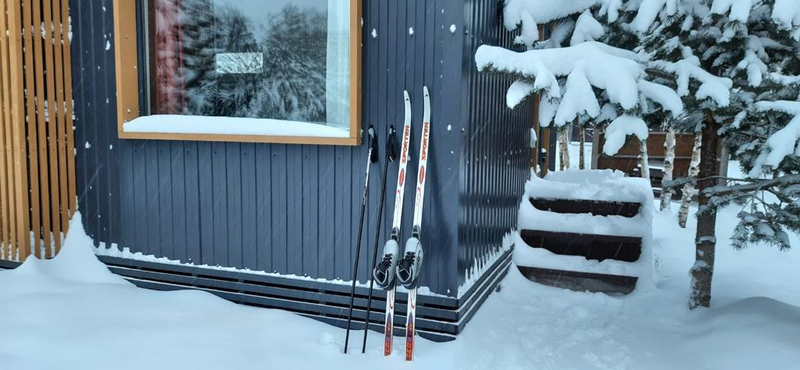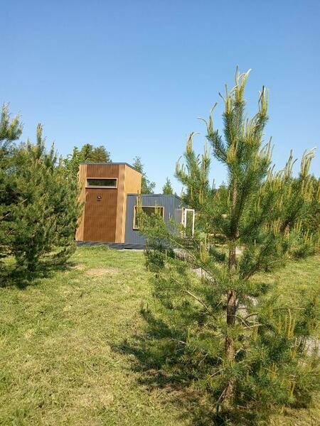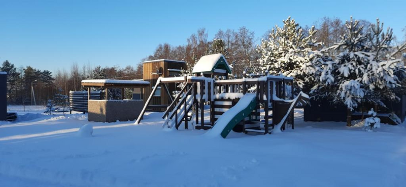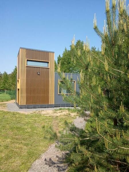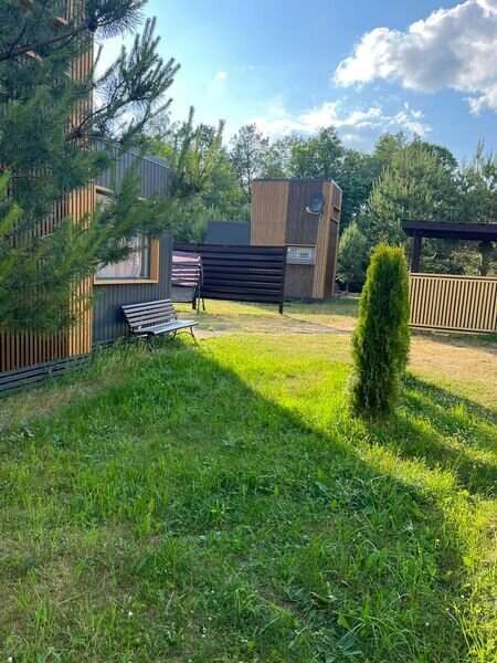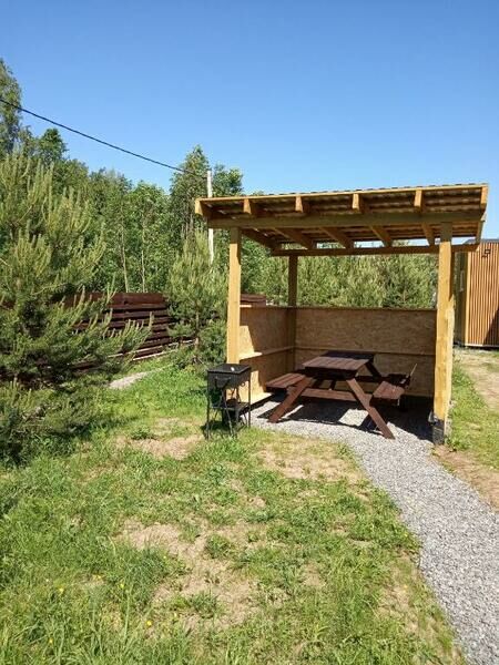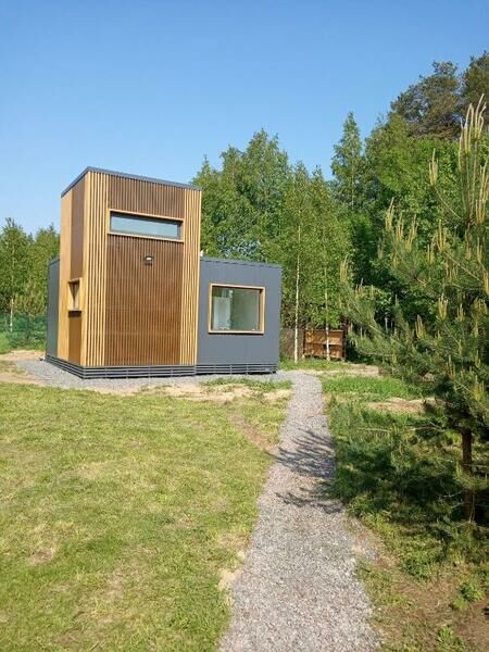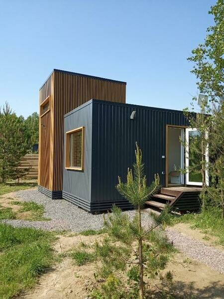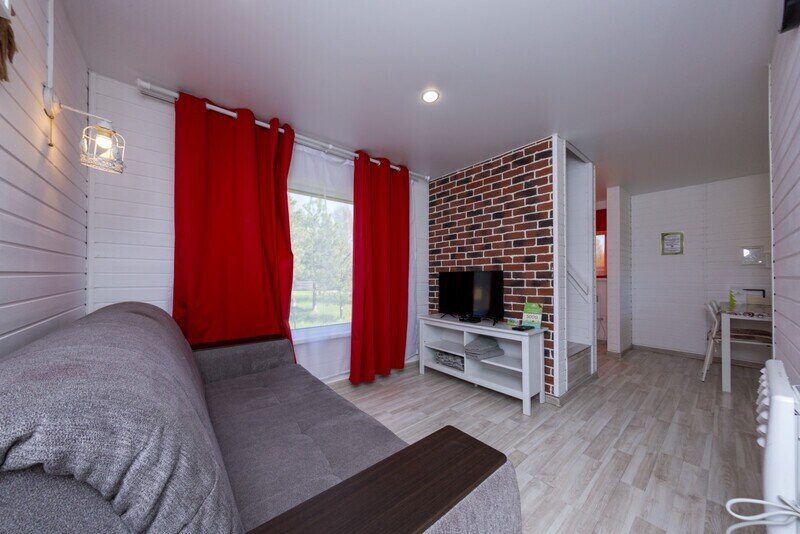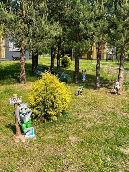 Коттеджи выполнены в стиле лофт со скандинавским минимализмом. Рядом с каждым домиком беседка, гамак и мангал.