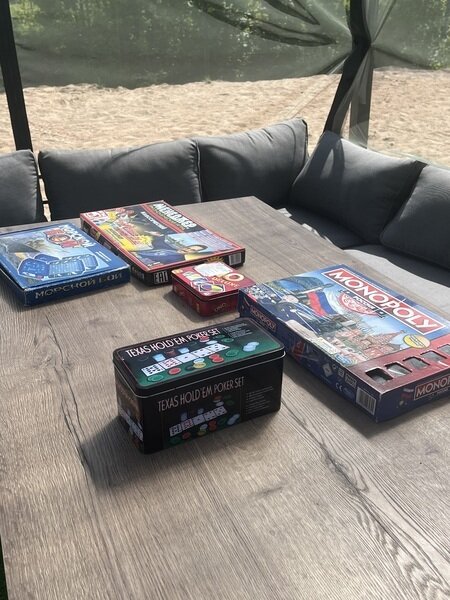 На территории есть баня, а для детей — детская площадка и батут. Для любителей активного отдыха спортивный инвентарь, футбольное поле, теннисный стол. Предлагаются различные настольные игры.