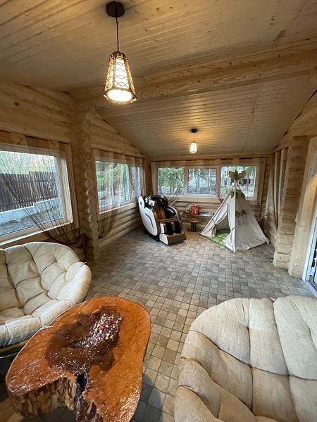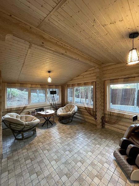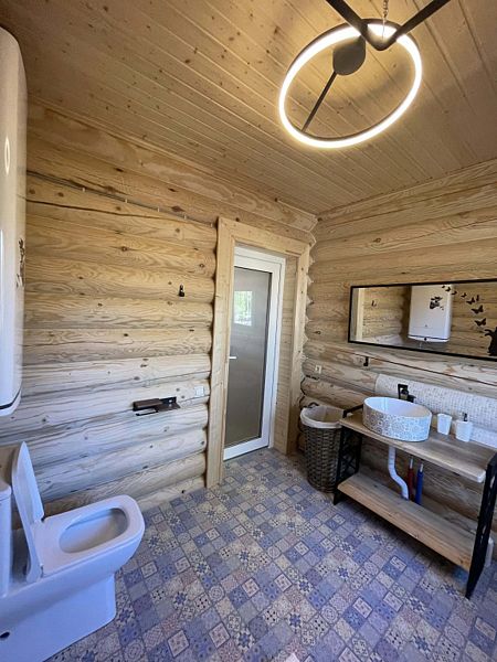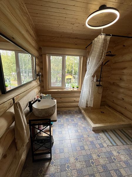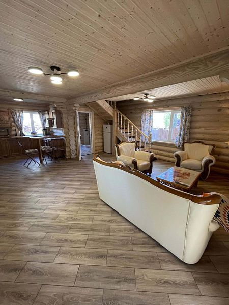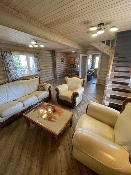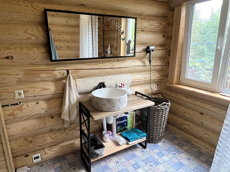 Теплый бревенчатый дом с тремя спальнями и двумя санузлами.