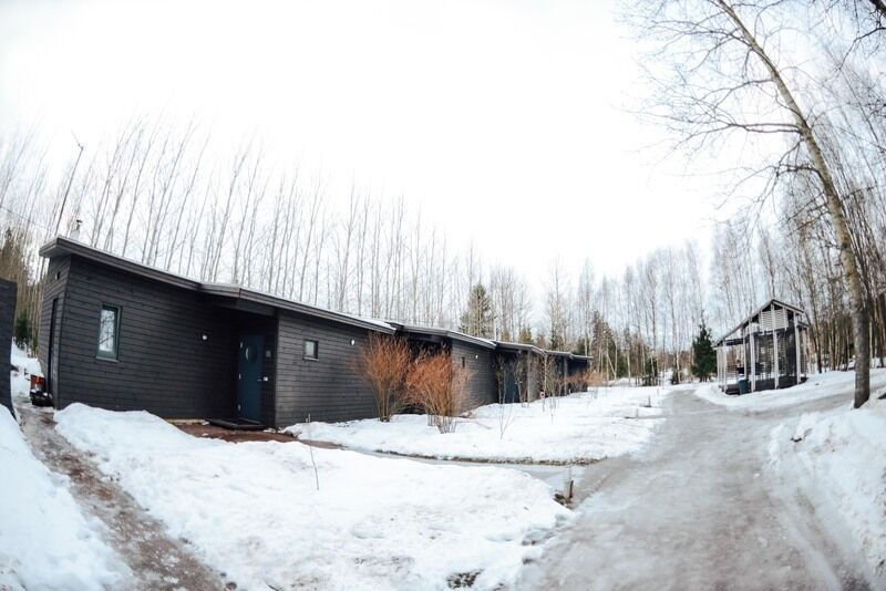 Небольшой, но уютный домик в скандинавском стиле для двоих: две отдельностоящие одноместные кровати, телевизор, печка-буржуйка, электрическое отопление, журнальный столик, комод, микроволновка, холодильник, чайник, ванная комната. Ванная комната в двухместном домике: душ, унитаз, раковина, зеркало, холодная и горячая вода, косметика, полотенца, фен. Рядом с домиком оборудована собственная зона для барбекю со столом, стульями и мангалом. Шампура и решетки для жарки мяса предоставляются бесплатно. Уголь, жидкость для розжига и спички гости везут свои.