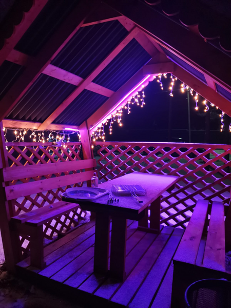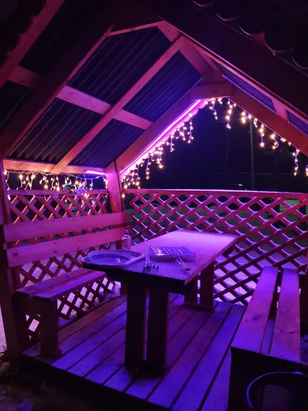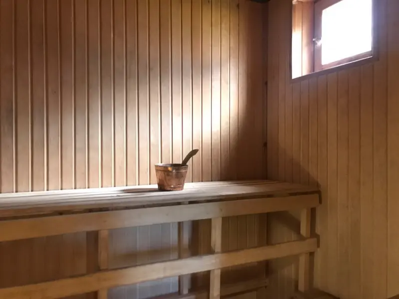 просторный дом для отпуска с отдельным входом с сауной, двумя спальнями вместимостью 4-8 человек, большой кухней со всем необходимым оборудованием, ванной комнатой, спутниковое телевидение, беспроводной интернет широкая терраса, отличная зона отдыха с площадкой для барбекю. Отопление во всех комнатах.