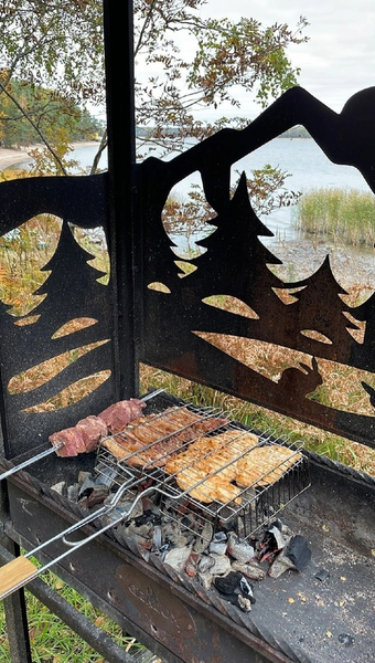 Рядом с каждым домиком расположена беседка с уличной мебелью и освещением и оборудована площадка для барбекю. Угли, дрова, розжиг и принадлежности для мангала можно приобрести у администратора.