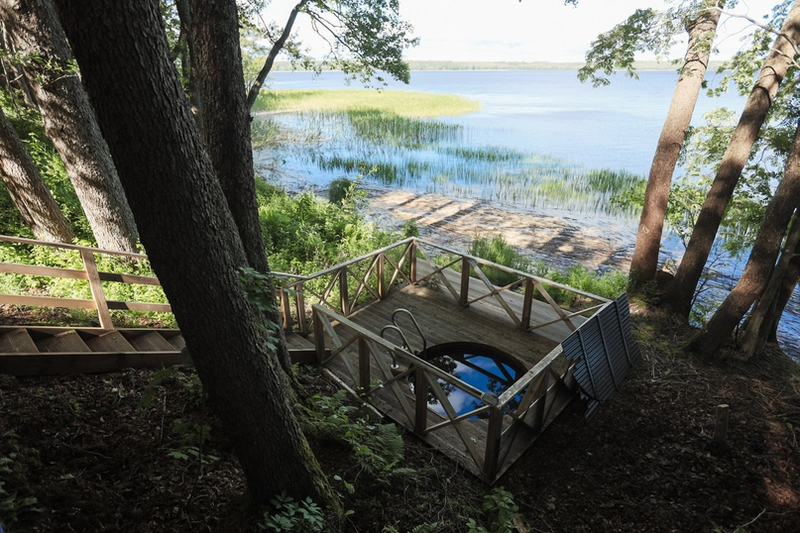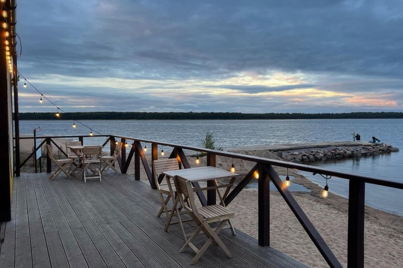 Прямо на берегу стоит дровяная баня на 4 человек, её можно забронировать заранее к приезду. На территории оборудованы спортивная и детская площадки. Рыбачить можно с лодки или прямо с пирса. На пляже готовится к открытию кафе-бар, в меню которого будут лёгкие закуски и напитки.