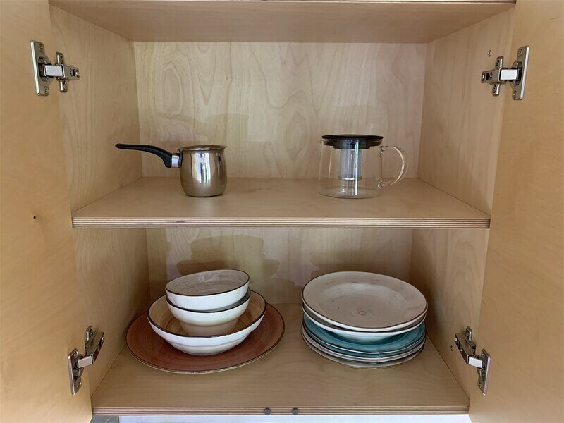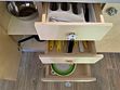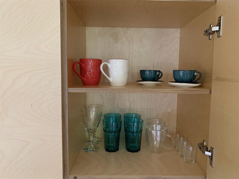 - кухонный уголок (разделочный стол, холодильник с морозильной камерой, газовая плита с духовкой, вытяжка, чайник, раковина, весь необходимый набор посуды для приготовления, посуда для сервировки стола),