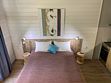 Коттедж оборудован всем необходимым для комфортного размещения четырех человек или семейной пары с двумя детьми. На втором этаже двуспальная кровать, на первом — двуспальный диван-кровать. Дополнительно можно установить кроватку-манеж.