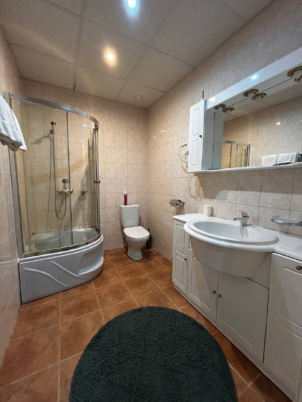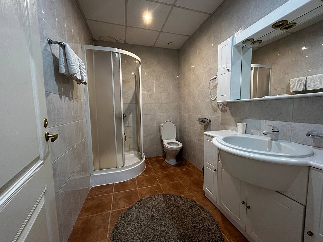 Просторная прихожая, ванная комната с душевой кабиной и санузлом, есть вся необходимая мебель, мини-холодильник, электрический чайник, туалетный и журнальный столики, пуф.
