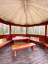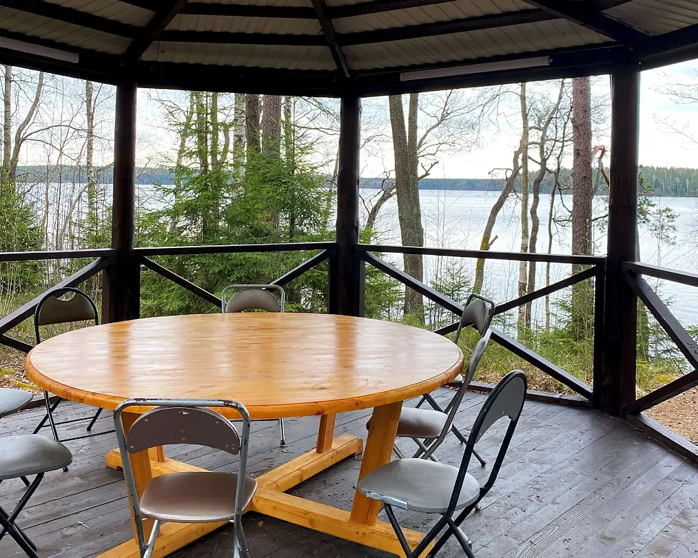 На нашей территории расположены беседки, в них можно разместиться как узким семейным кругом (беседки на 4-6 человек), так и коллективом до 100 человек.