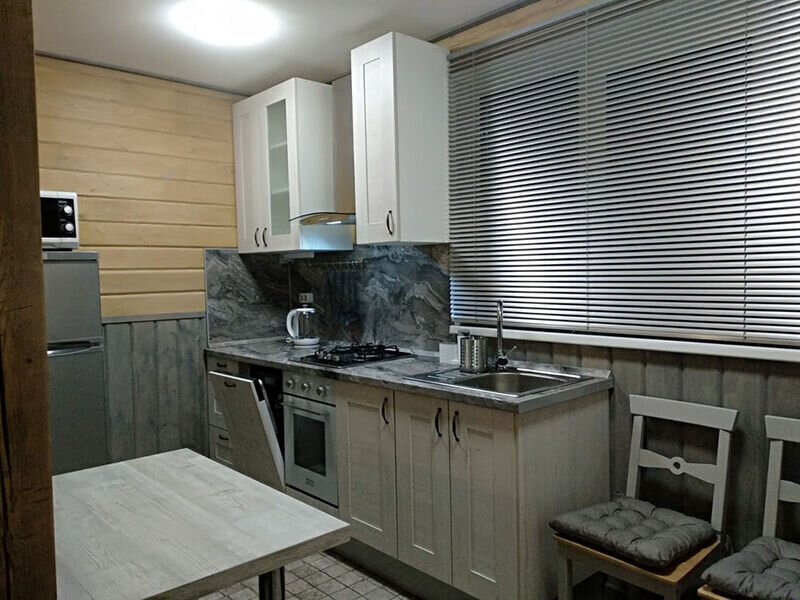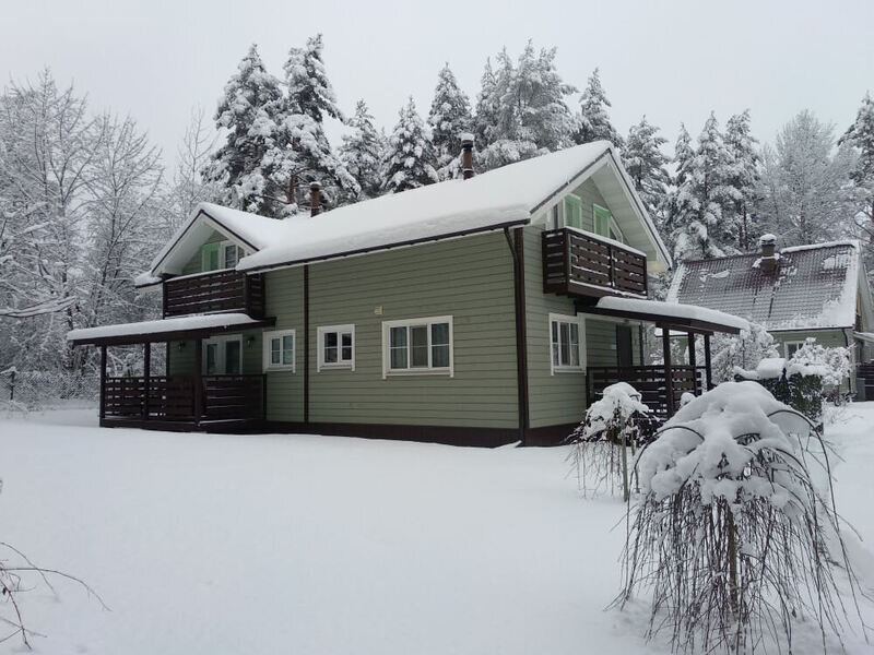 - В 12 километрах от коттеджей находятся горнолыжные курорты (Красное озеро, Снежный).