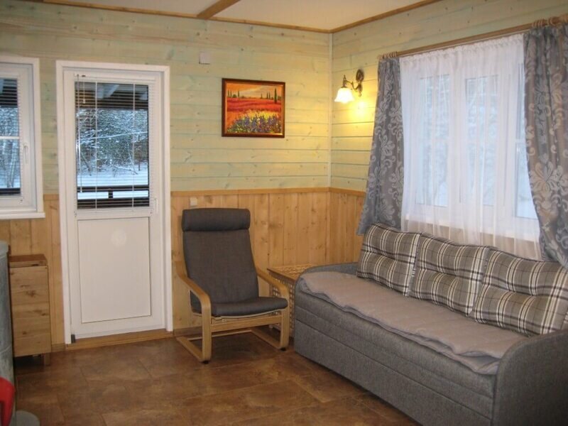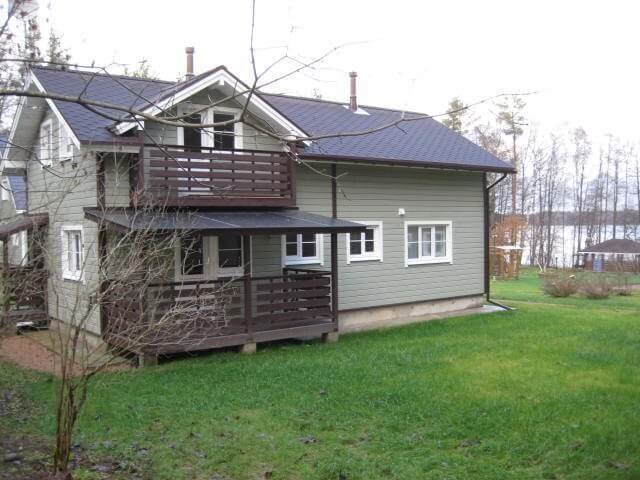 Снимите уютный, отдельный коттедж рядом с озером. Дом выполнен в скандинавском стиле из бруса с хорошим утеплением — 80 м2, двухкамерные стеклопакеты, балкон, большая крытая веранда с мебелью ,теплый пол на первом этаже. Постельное белье, полотенца, хоз. принадлежности, гель для душа, шампунь — в комплекте. В доме: На первом этаже гостиная с теплосберегающим немецким камином, оборудованная кухня: электроплита, микроволновая печь, электрочайник, холодильник, посудомоечная машина, вся посуда на 6 персон. Ж/к телевизор ( 37 дюймов ), антенна Триколор — 200 каналов, большой стол, угловой мягкий диван, теплый пол на всей площади, санузел с душем и сауной. На втором этаже: 2 отдельных спальни с электрическими обогревателями, балконы, санузел. Коттедж рассчитан на комфортное размещение до 6-ти человек. Возле коттеджа своя зона: стол, скамейка, мангал. Зона WI-FI на всей территории — бесплатно.