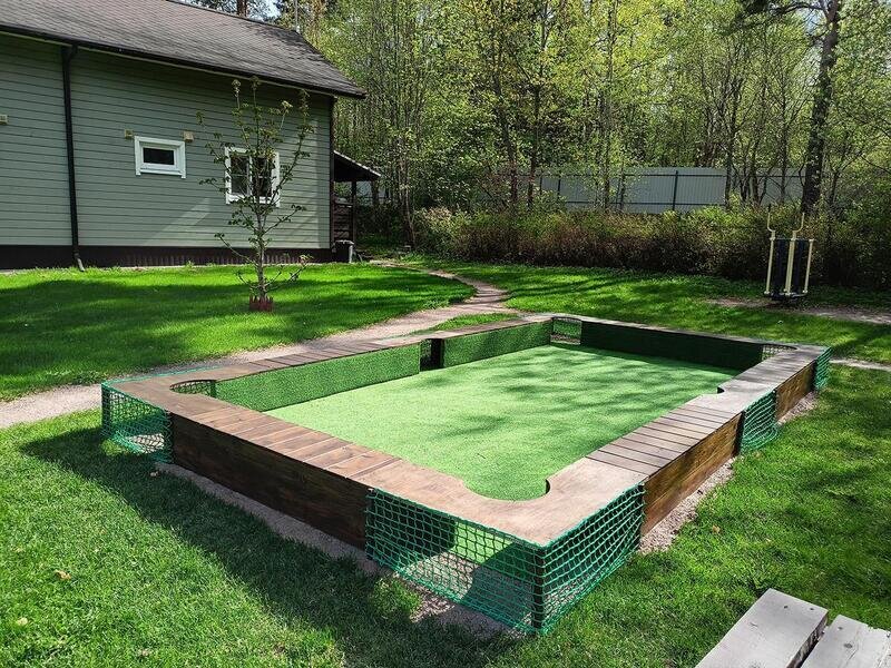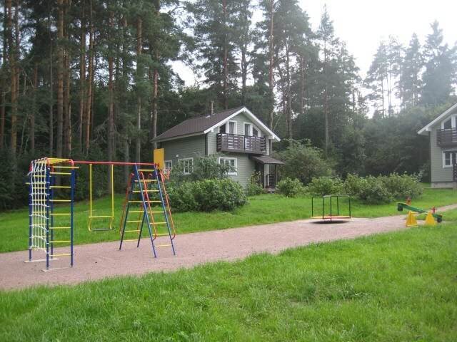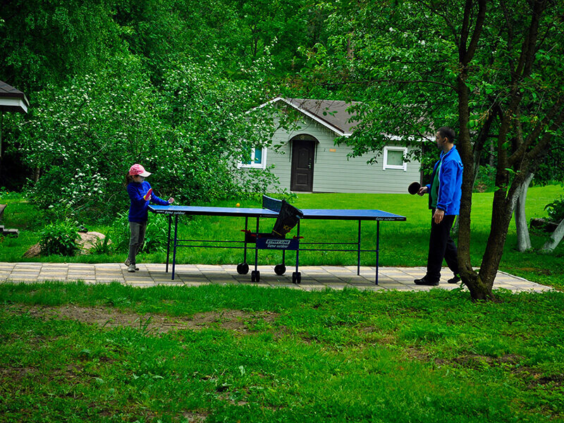- На территории есть уличные тренажеры, горка для катания на ватрушках длиной 40 метров, батут, теннисный стол, детская площадка, качели (включено в стоимость).