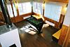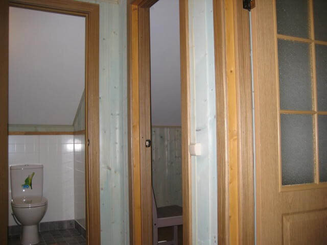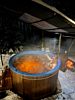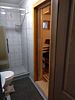 В бане комфортно могут находиться 5-6 человек. С уличной веранды можно окунуться в купель с холодной озерной водой, расположенной тут же у входа на веранду или пробежаться по тропинке 20 метров и нырнуть в озеро.