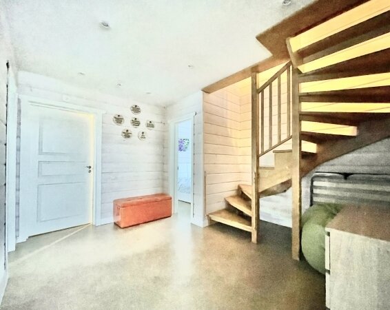 Расположен во Всеволожском районе в деревне Порошкино, в 3 км от КАД. Заезд после 17:00. Выезд до 14:00. Страховой депозит 15 000 ₽.