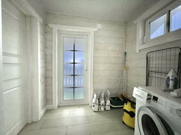 1 этаж — прихожая, кухня-столовая (газовая плита, духовка, холодильник, посудомоечная машина, стиральная машина, микроволновая печь, чайник, тостер, посуда для приготовления и сервировки на 12 персон), гостиная с камином, кондиционер, 1 спальня с двуспальной кроватью, санузел с душем, сауна, большая терраса.