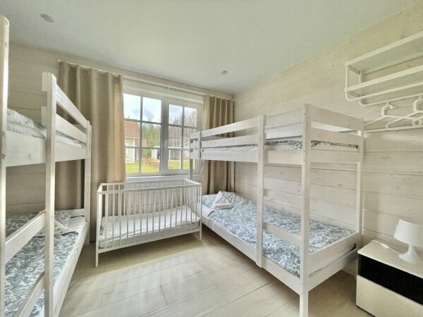 2 этаж - 2 спальни с 2 односпальными кроватями в каждой, санузел.