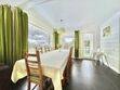 1 этаж — прихожая, кухня (газовая плита, духовка, холодильник, посудомоечная машина, стиральная машина, микроволновая печь, чайник, тостер, посуда для приготовления и сервировки на 10 персон), столовая, гостиная с камином, кондиционер, 1 спальня с двуспальной кроватью, 1 спальня с 2 двухъярусными кроватями, санузел с душем, сауна, большая терраса.
