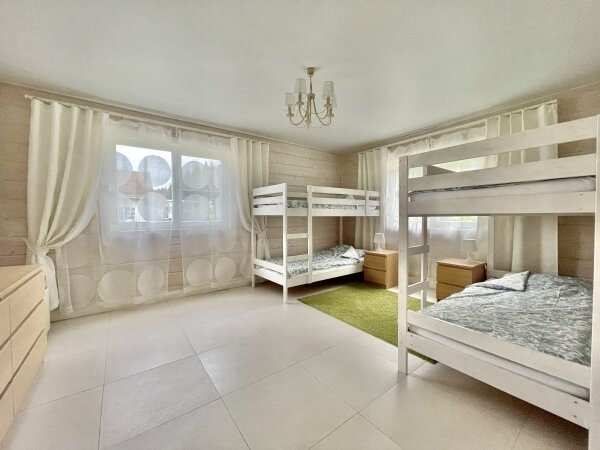 2 этаж — 2 спальни с двуспальными кроватями, 2 спальни с 2 односпальными кроватями в каждой, санузел с душем, балкон.