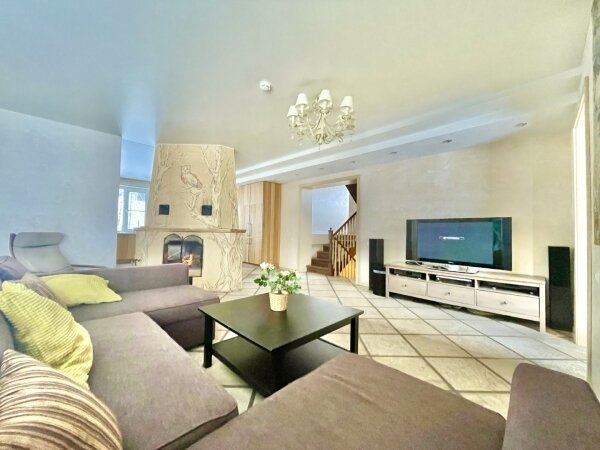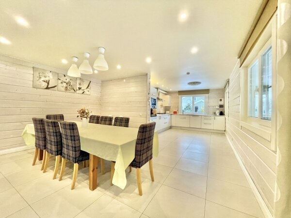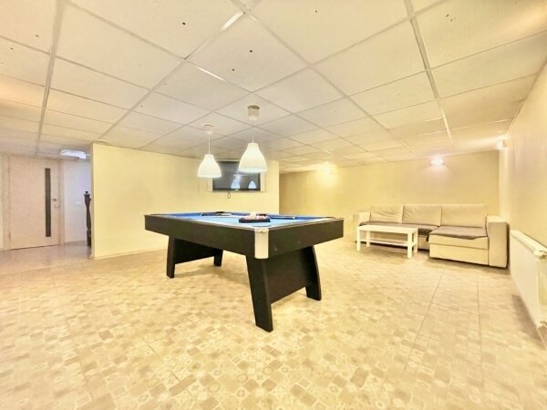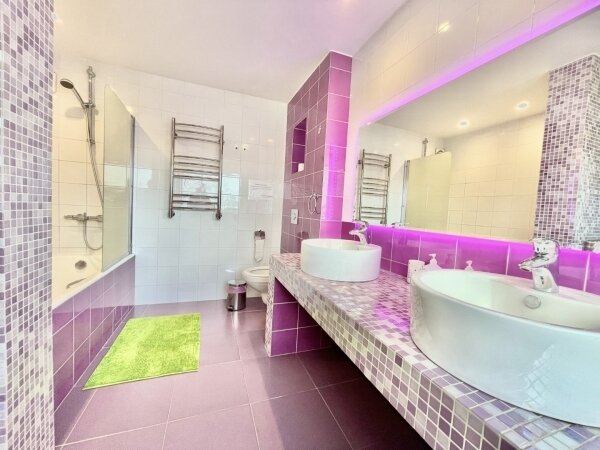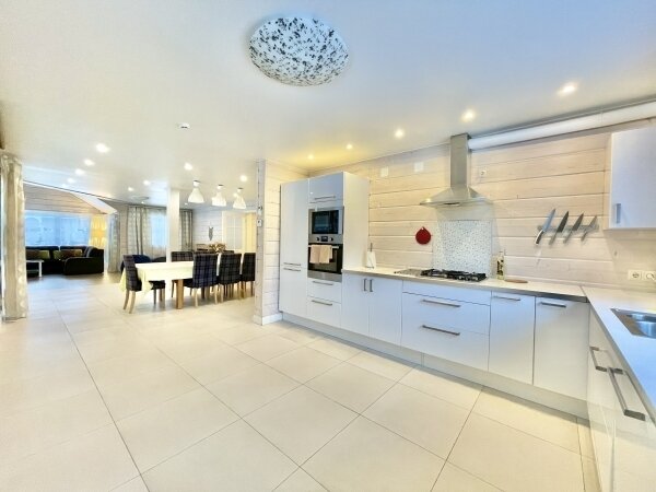 4 спальни с двуспальными кроватями, 3 гостиные с большими диванами, 3 санузла, кухня-столовая (газовая плита, духовка, холодильник, посудомоечная машина, стиральная машина, микроволновая печь, чайник, тостер, посуда для приготовления и сервировки на 14 персон), зимний сад/игровая комната, сауна, бильярдная и большая терраса.