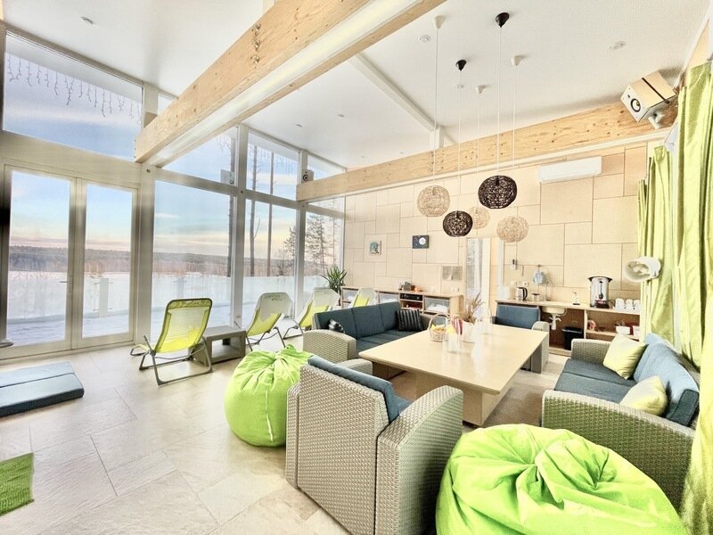 май 2021 г.Волшебная баняВидно, что место построено с любовью. Аккуратность во всем. Ни одного валяющегося предмета или непокрашенной скамейки. Очень много всего для отдыха. Мини-зоопарк, детская площадка, качели, беседки, велосипеды, лодочки, тамаскаль, русская баня, настольный теннис, просто настольные игры. Уютный ресторанчик. Большой зал для медитаций и дискотек. Отдельно стоящие двухэтажные коттеджи для отдыха с семьей или друзьями. Карельский лес с грибами и ягодами. Озеро с рыбкой. В общем если нужно красиво и уютно отдохнуть - вам сюда. Отдельная песня- это баня. Две деревянные купели на улице: одна с ледяной, а другая с горячей водой - это волшебно. А лежать после парилки в кресле и смотреть как качаются высоченные корабельные сосны- просто запредельные ощущения. В общем рекомендую! :)