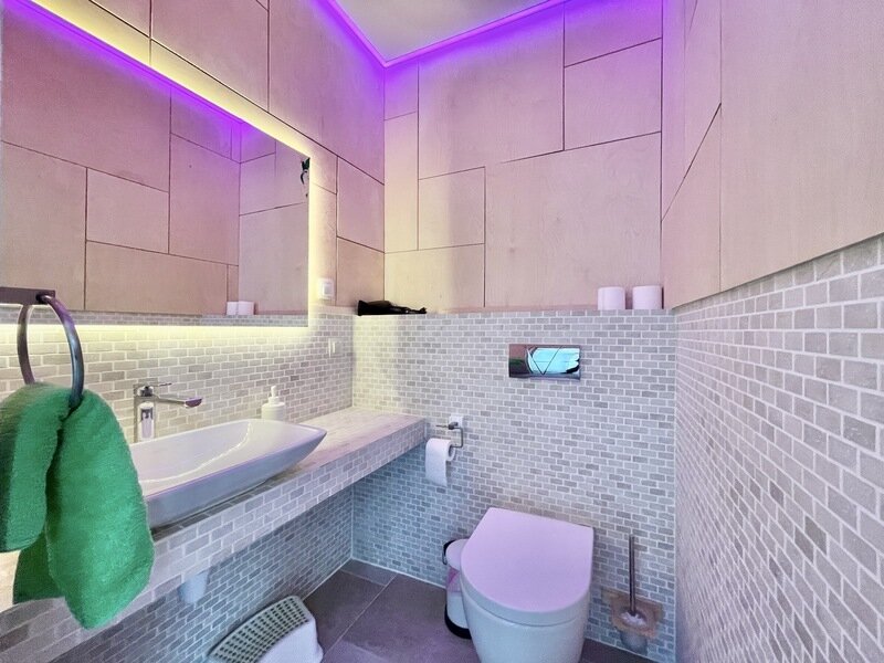 Акустика Behringer, ТВ 60 дюймов, сантехника Villeroy&Laufen.