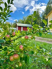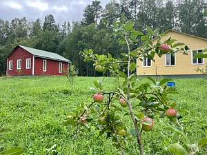 На территории растет сад с яблонями, сливами, вишнями, много кустов черной и красной смородины, крыжовника, садовой голубики, желтой и красной малины, в огороде — овощные культуры. В течение лета и осени гости могут бесплатно полакомиться выращенными в чистой природной среде ягодами, плодами и вкуснейшими кабачками «цукини зебра». Отличный вариант для семейного отдыха и рыбалки!