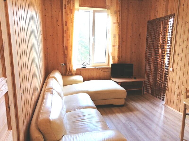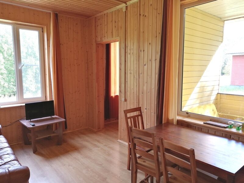 Здесь, на краю большой лесной поляны, у опушки соснового леса разместились дома для гостей. Внутри — просторные и уютные помещения: гостиная с оборудованной кухней, две спальни, душ, санузел, веранда, а также отдельное помещение для дополнительного спального места. Высокие потолки (2,7 м) и натуральное дерево отделки обеспечивают хороший объем и свежесть лесного воздуха в доме. В комнатах удобная мебель, предметы обихода, постельные принадлежности и все необходимое для постоянного проживания. Дома — четырехместные, но есть и дополнительные спальные места.