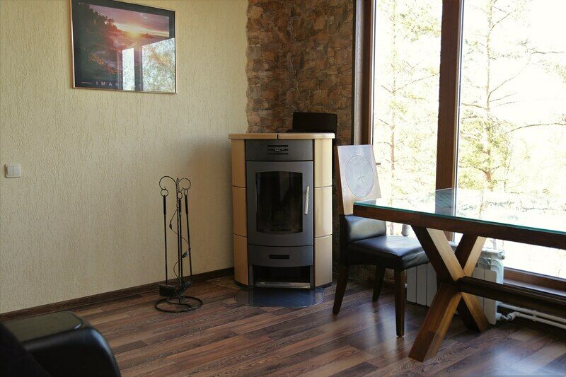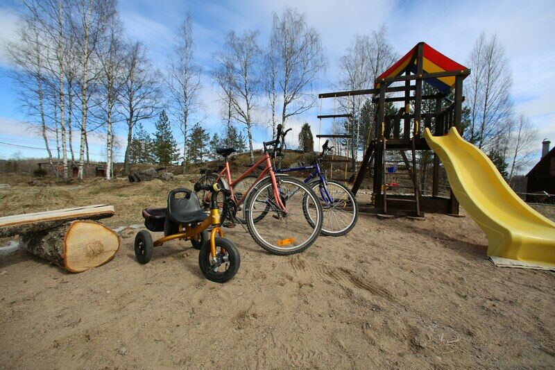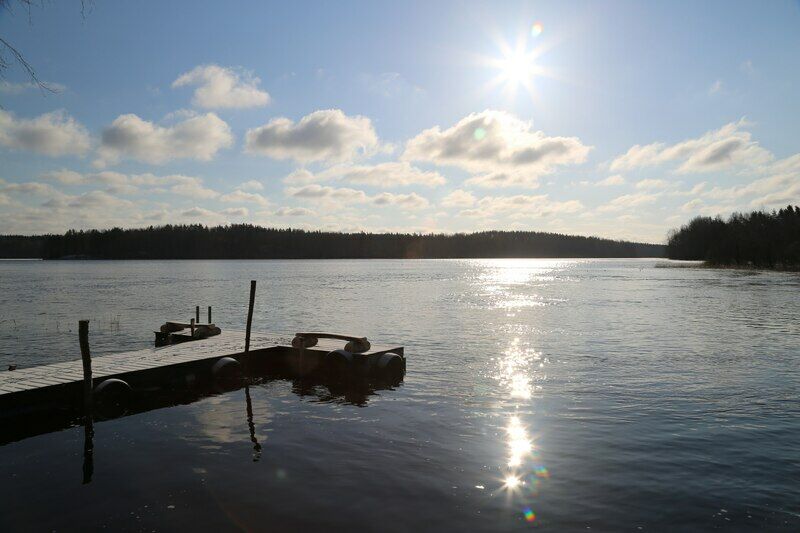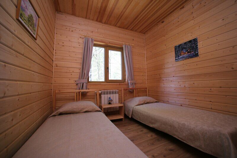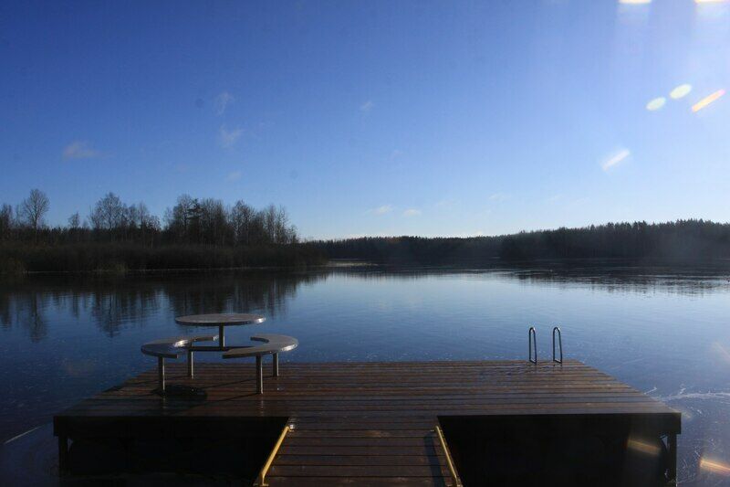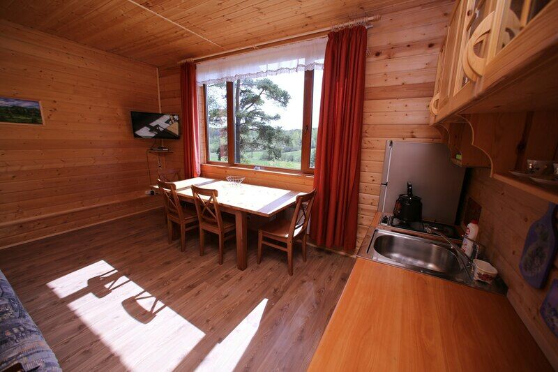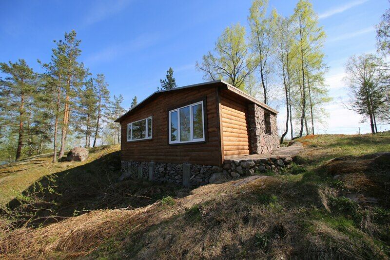 Дом со всеми удобствами. Гостиная совмещенная с кухней, две спальни (в одной двуспальная кровать), панорамные окна с видом на озеро, спутниковое ТВ, биотуалет, душ.