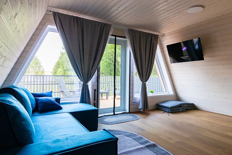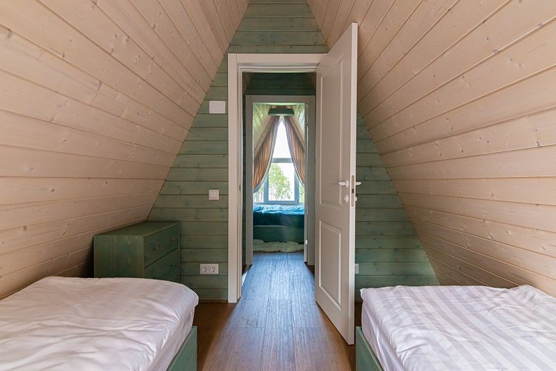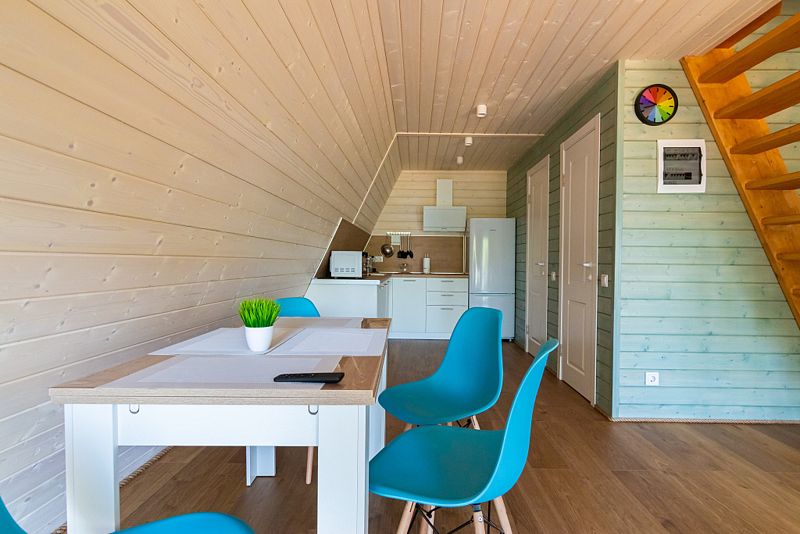 В доме находится полноценная кухня с микроволновой печью, холодильником, посудомоечной и стиральной машинами. Первый этаж - просторная кухня-гостинная с удобным диваном и телевизором. На втором этаже 2 комнаты с двухспальной и 2 односпальными кроватями с ортопедическими матрасами для более комфортного и спокойного сна.