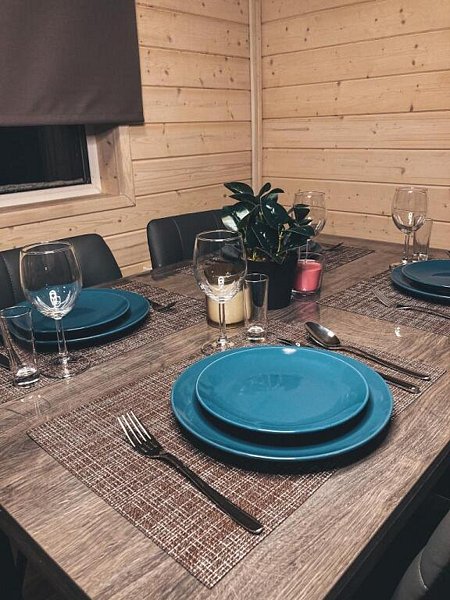 Просторная кухня со всем необходимым оборудованием, терраса для приятных посиделок, финская сауна в коттедже - все это для комфортного отдыха.
