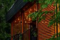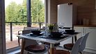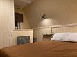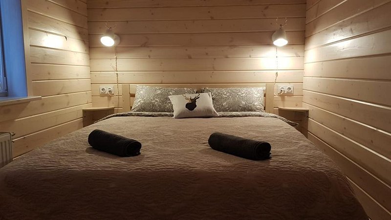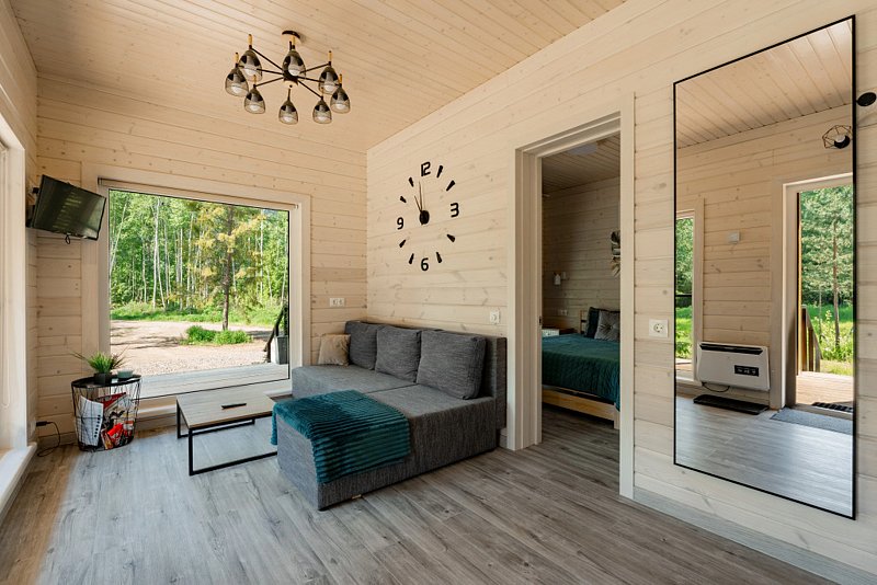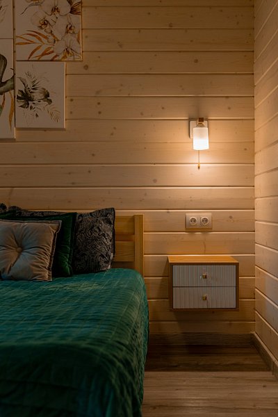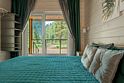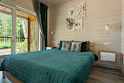 Рассчитан на максимальное размещение четырех человек, состоит из одной спальни с большой двуспальной кроватью и панорамным окном с видом в лес, в которой комфортно размещается два человека.