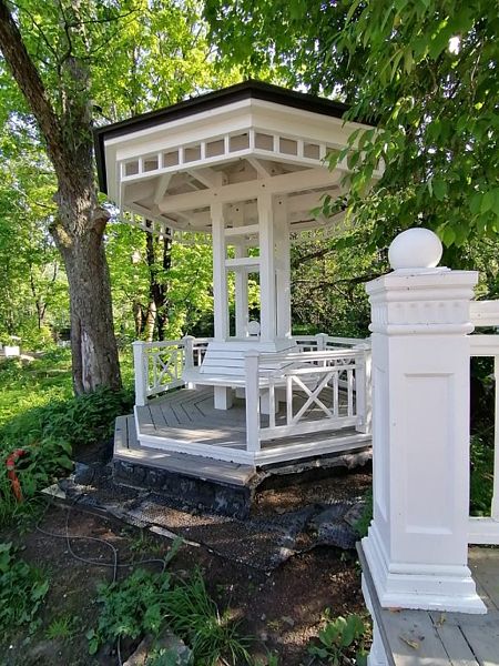 На «Усадьбе Киискиля» вас встретит чудесный парк, украшенный изысканными беседками, создающими атмосферу уюта и гармонии с природой. Главная беседка, восстановленная по старинным фотографиям, позволяет вам прикоснуться к истории и насладиться её архитектурным очарованием.