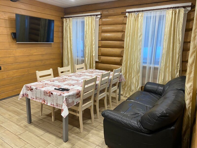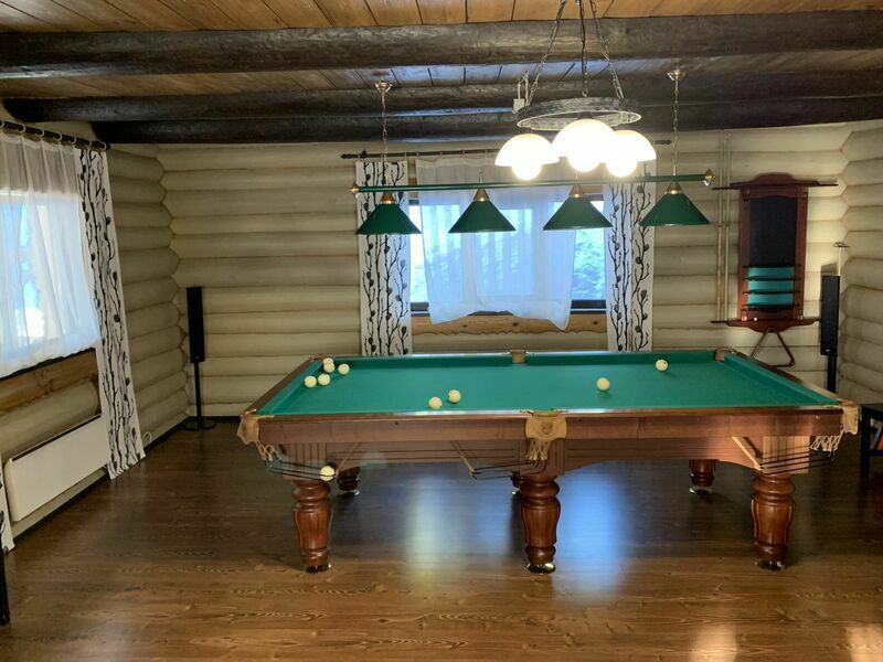 Комфортабельный коттедж для 10 человек со всеми удобствами, бильярдом и теннисным столом. Оборудован кухней со всеми необходимыми принадлежностями, чайником. На первом этаже расположена просторная гостиная с камином, большим обеденным столом, телевизором и зоной отдыха. В доме расположены 4 двухместных изолированных комнаты (возможно в любую из них поставить детскую кроватку, по запросу). 2 дополнительных спальных места можно организовать на диванах в гостиной. Сан.узел и душевые расположены на каждом этаже. Коттедж имеет собственную парковку, просторную террассу и балкон.