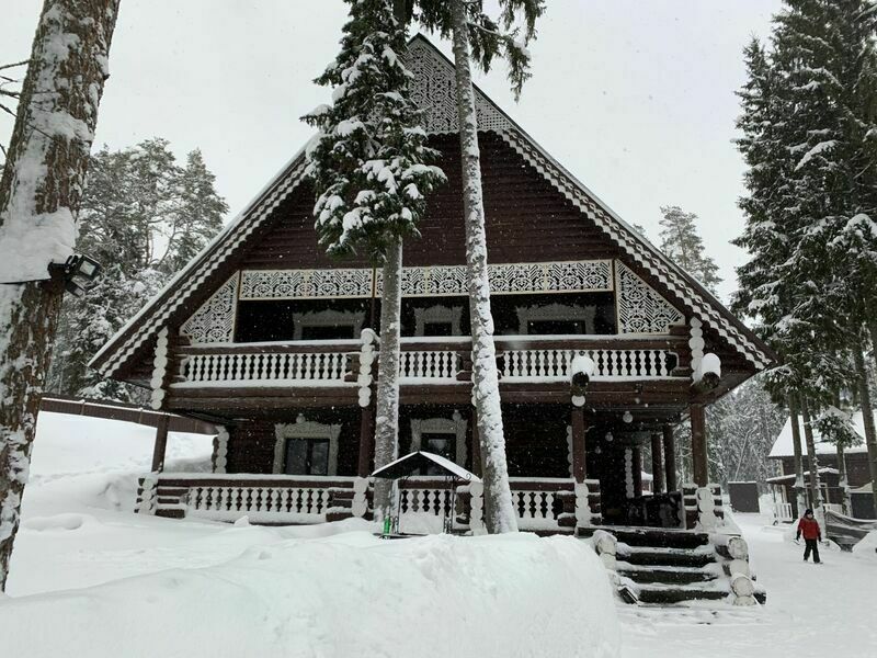 Просторный коттедж на 15 человек со всеми удобствами, камином и русской печью. Оборудован кухней со всеми необходимыми принадлежностями, чайником. На первом этаже расположена просторная гостиная с камином и русской печью, большим обеденным столом, телевизором и зоной отдыха. Коттедж имеет 6 изолированных спален (от 2 до 3 отдельных кроватей в каждой комнате), 2 дополнительных спальных места можно организовать на диванах в гостиной. Сан.узлы и душевые расположены на каждом этаже. Коттедж имеет собственную парковку и просторную террасу.