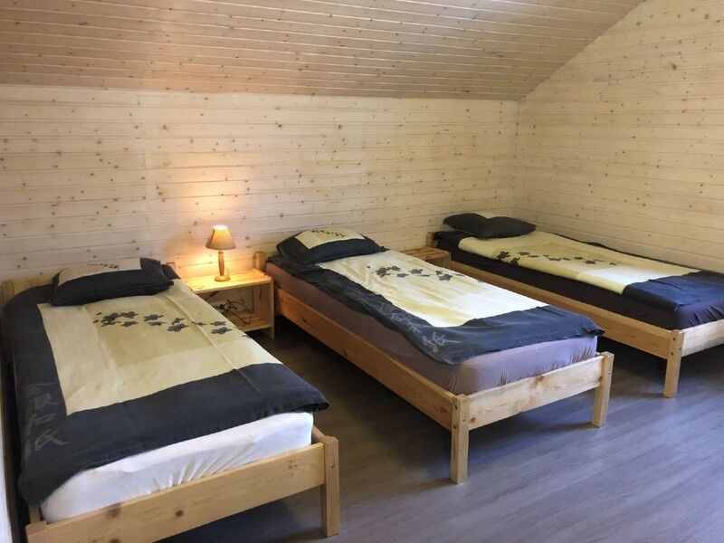 Трехместный номер с общей кухней и ванной комнатой, расположенный в отдельном четырехкомнатном коттедже – вариант бюджетного и комфортного отдыха! Отлично подойдет грибникам, охотникам, рыболовам и всем, кто приезжает для активного отдыха на природе. В номере есть 3 отдельных кровати, постельное белье и полотенца. Коттедж оборудован общей кухней со всем необходимым для разогрева еды и небольшого перекуса, набором посуды и столовых приборов. Гостевой дом так же оснащен сан.узлом и душевой.