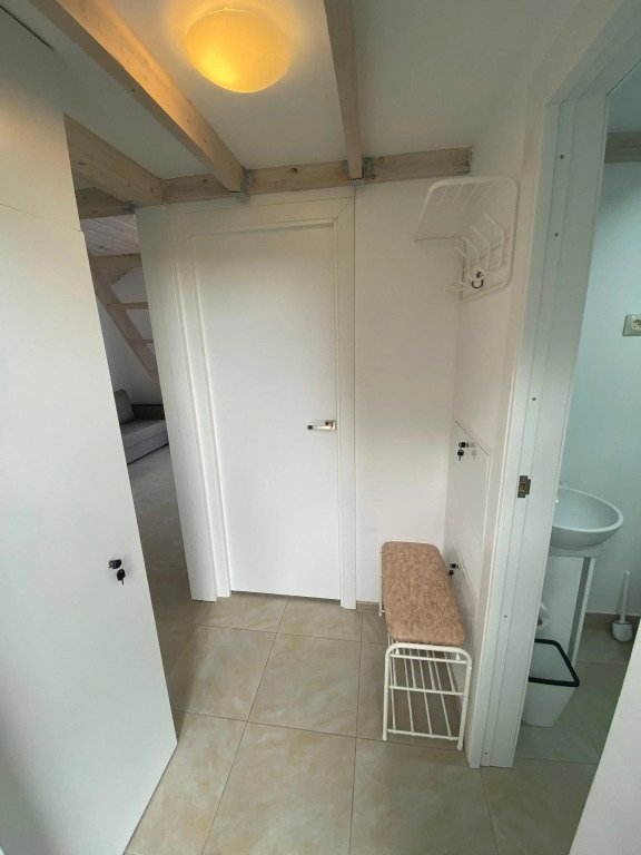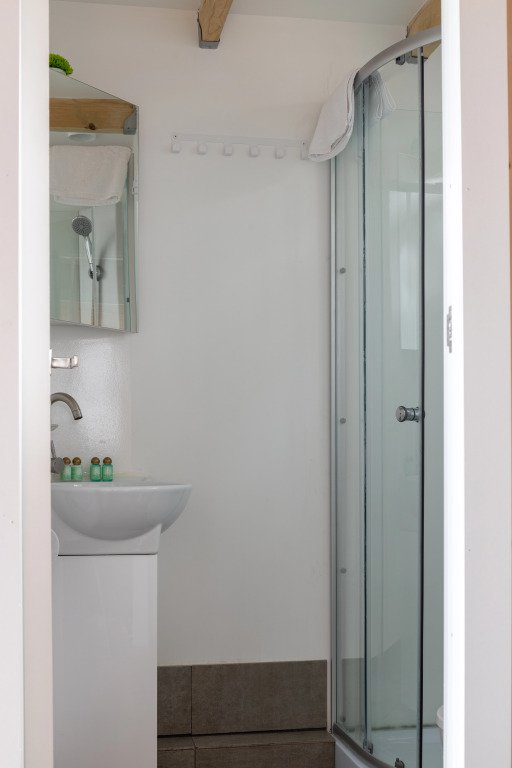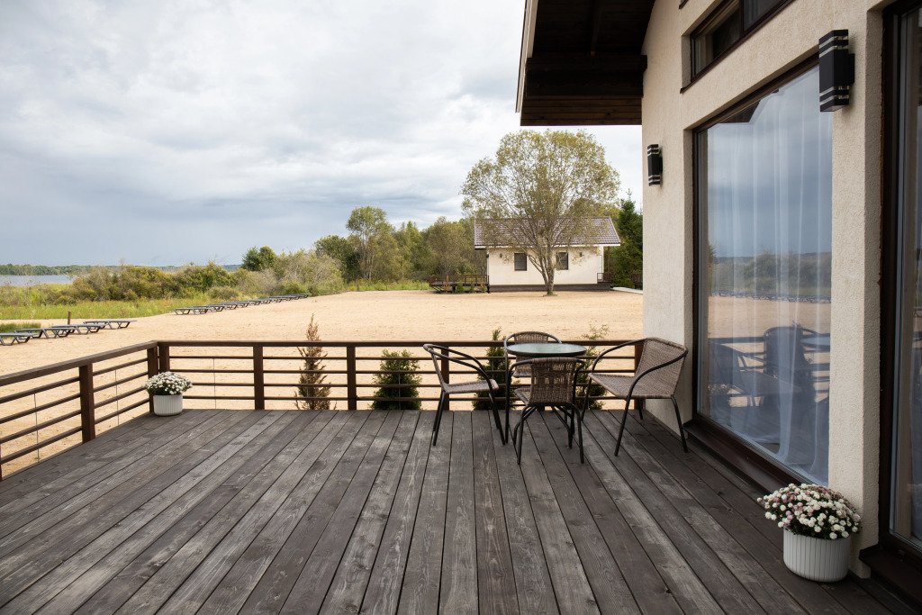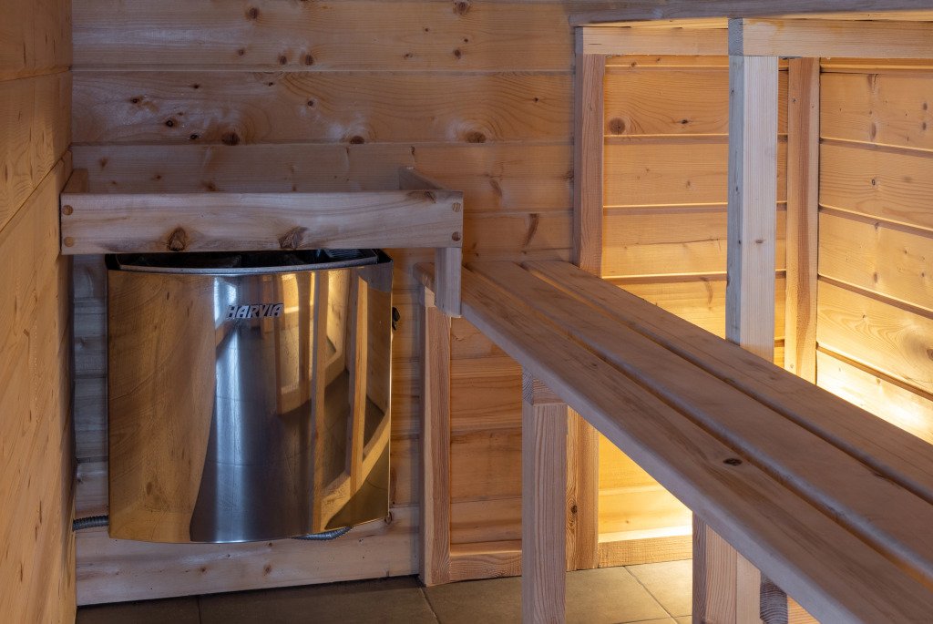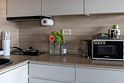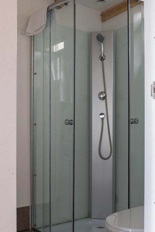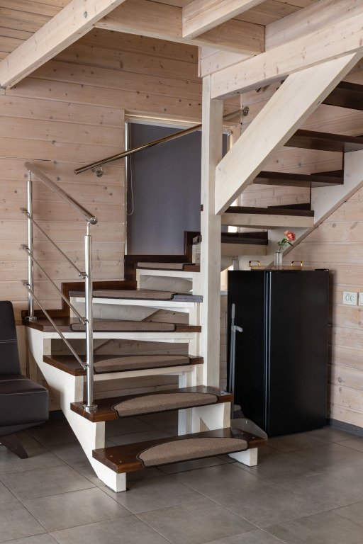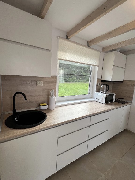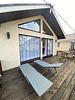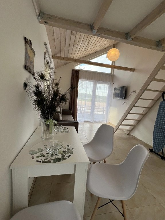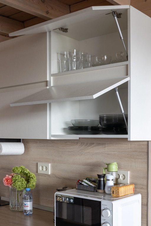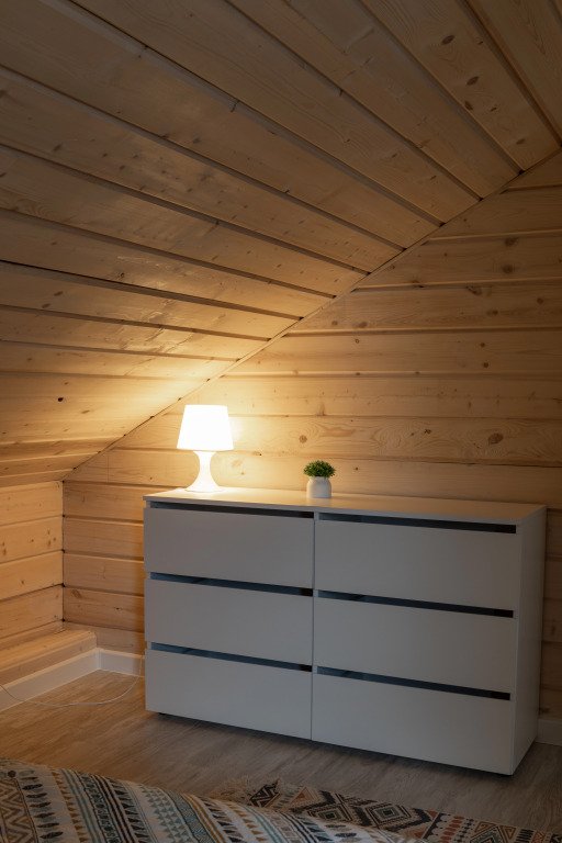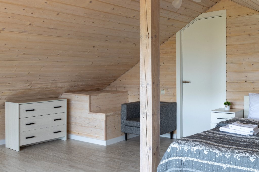 Оснащение: кухня с электрической плитой, мини-холодильник, обеденный стол и четыре стула, микроволновая печь, электрочайник, санузел с душевой кабиной, спальня с двуспальной кроватью и шкафом, зона для уличной одежды в прихожей, раскладной диван в гостиной, терраса 18 кв. м с шезлонгами, плетёной мебелью и стеклянным столом, Smart TV, Wi-Fi, система охраны Delta.