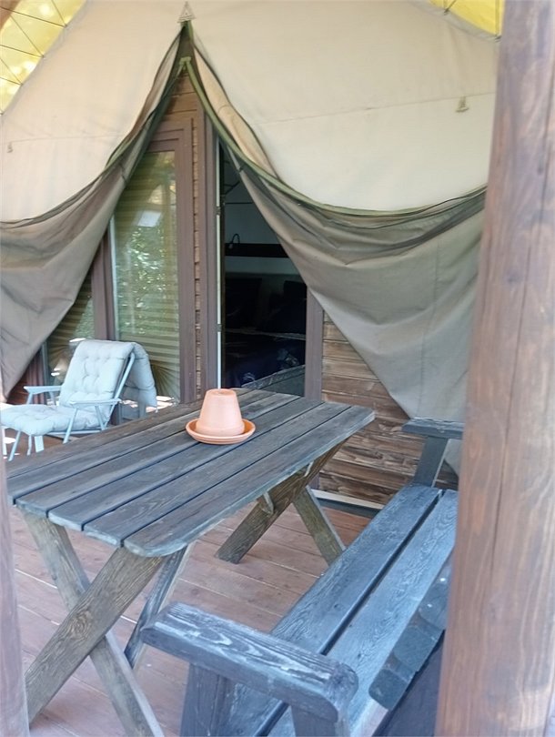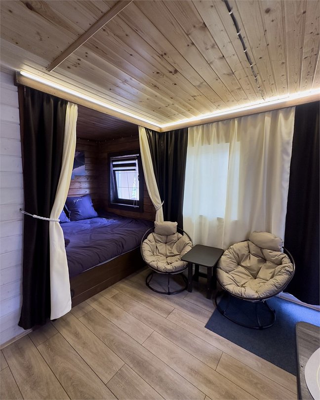 Тёплый, зимний эко дом "Сафари" со всеми удобствами в уединённом месте с потрясающим видом на ручей и лес. Внутри дома с/у, душевая кабина, оборудованная кухня, обеденный стол со стульями, большая двуспальная кровать (160х200), два кресла с журнальным столиком, две раскладушки, гардероб, смарт-тв. Рядом с домом собственная мангальная зона с мангалом, шампурами и решёткой для барбекю. На территории 30 соток находится зона отдыха с бассейном и шезлонгами, детский батут, бесплатная парковка, дом администрации и ещё один коттедж для отдыхающих. Охраняемая территория. Платные услуги: 1. Два дополнительных спальных места 80 х 190 (раскладушки) с постельными принадлежностями. Стоимость зависит от выбранного тарифа. 2. Доплата за животных 1000 руб за весь срок проживания (оплата при заселении) 3. Русская баня на дровах - 4000 руб/2 часа 4. Сибирский банный чан - 5000 руб без ограничения по времениУслуги и удобства
