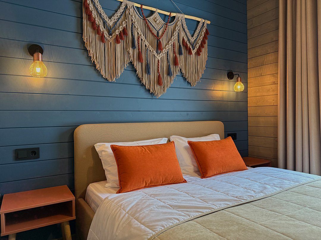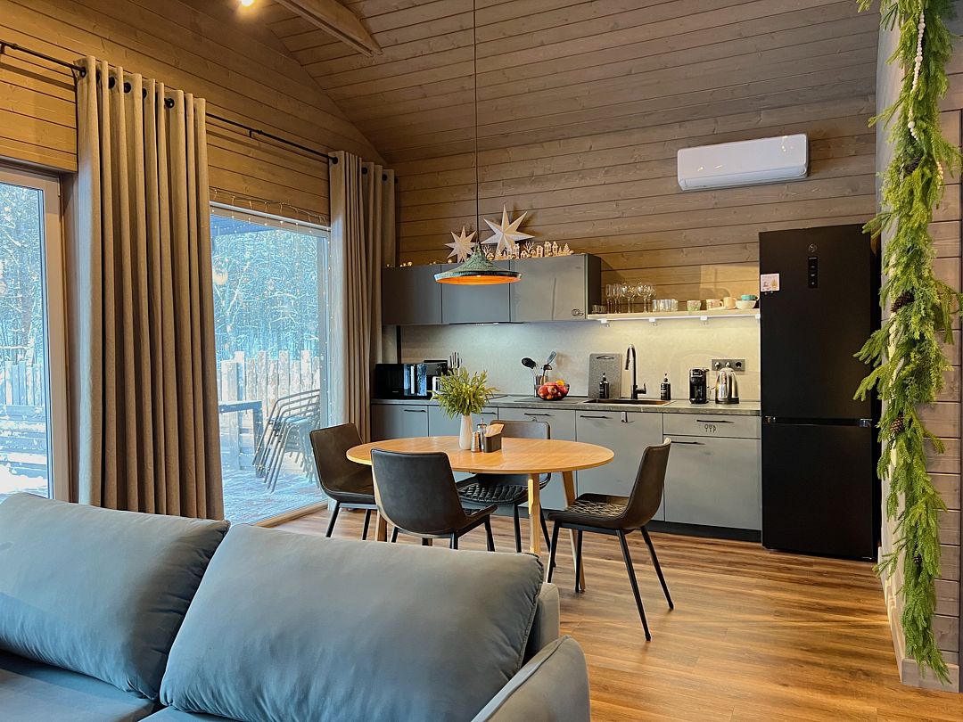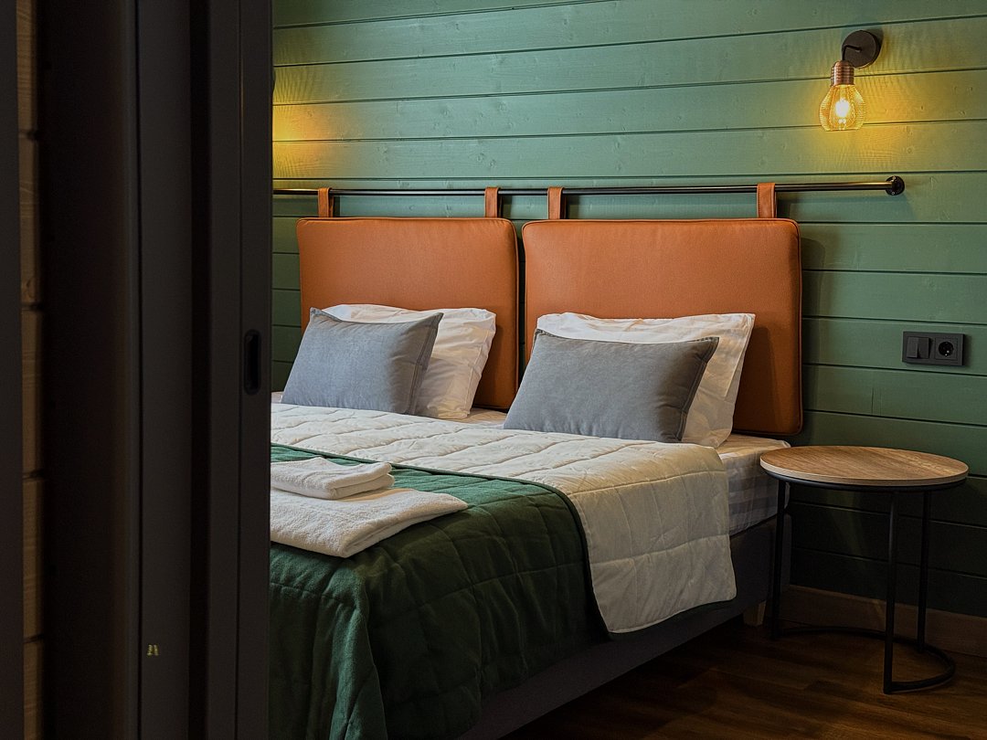 Просторный коттедж с двумя спальнями, кухней-гостиной и выходом на просторную террасу.