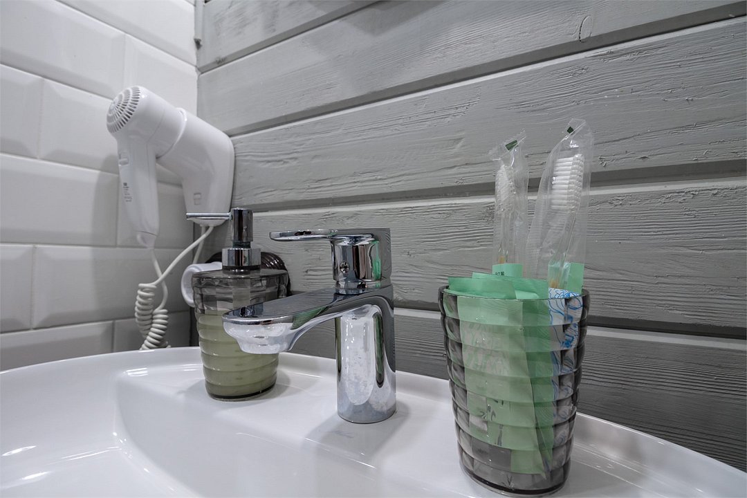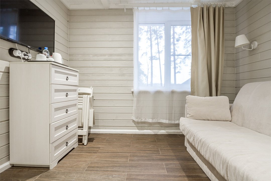Бесплатный Wi-Fi доступен для всех гостей на территории базы. Номер располагается на первом этаже и оборудован системой теплых полов, обеспечивая комфортную температуру в любое время года, в том числе и зимой.