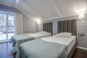 Просторный семейный номер с большой двуспальной кроватью и панорамными окнами. Номер идеально подходит для семейного отдыха, состоит из двух изолированных комнат и санузла.