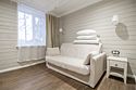 Вторая комната обустроена диваном-кроватью и прикроватной тумбочкой. Для вашего комфортного пребывания в номере предусмотрены все необходимые удобства: спутниковое телевидение, бесплатный Wi-Fi, чайник, банные полотенца, набор косметических средств, фен и тапочки.